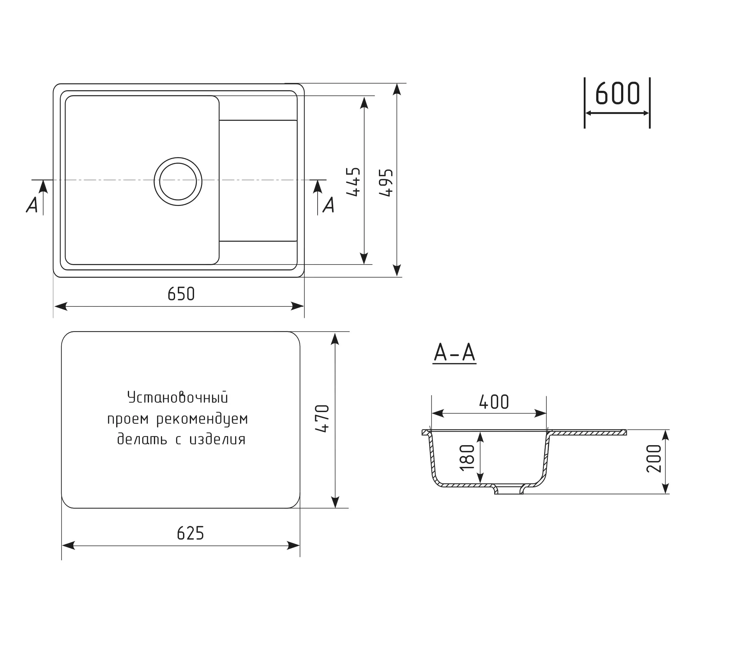 Классическая односекционная реверсивная мойка Uperwood ECON UPD-202 с плоским крылом является оборачиваемой - крыло может располагаться как справа, так и слева. Отверстие для смесителя отсуствует и вырезается на усмотрение покупателя с той стороны, где предполагается расположение крыла. Фреза в комплект не входит и покупается отдельно. Мойка устанавливается на мебельную базу 600 мм и врезается сверху в столешницу.
