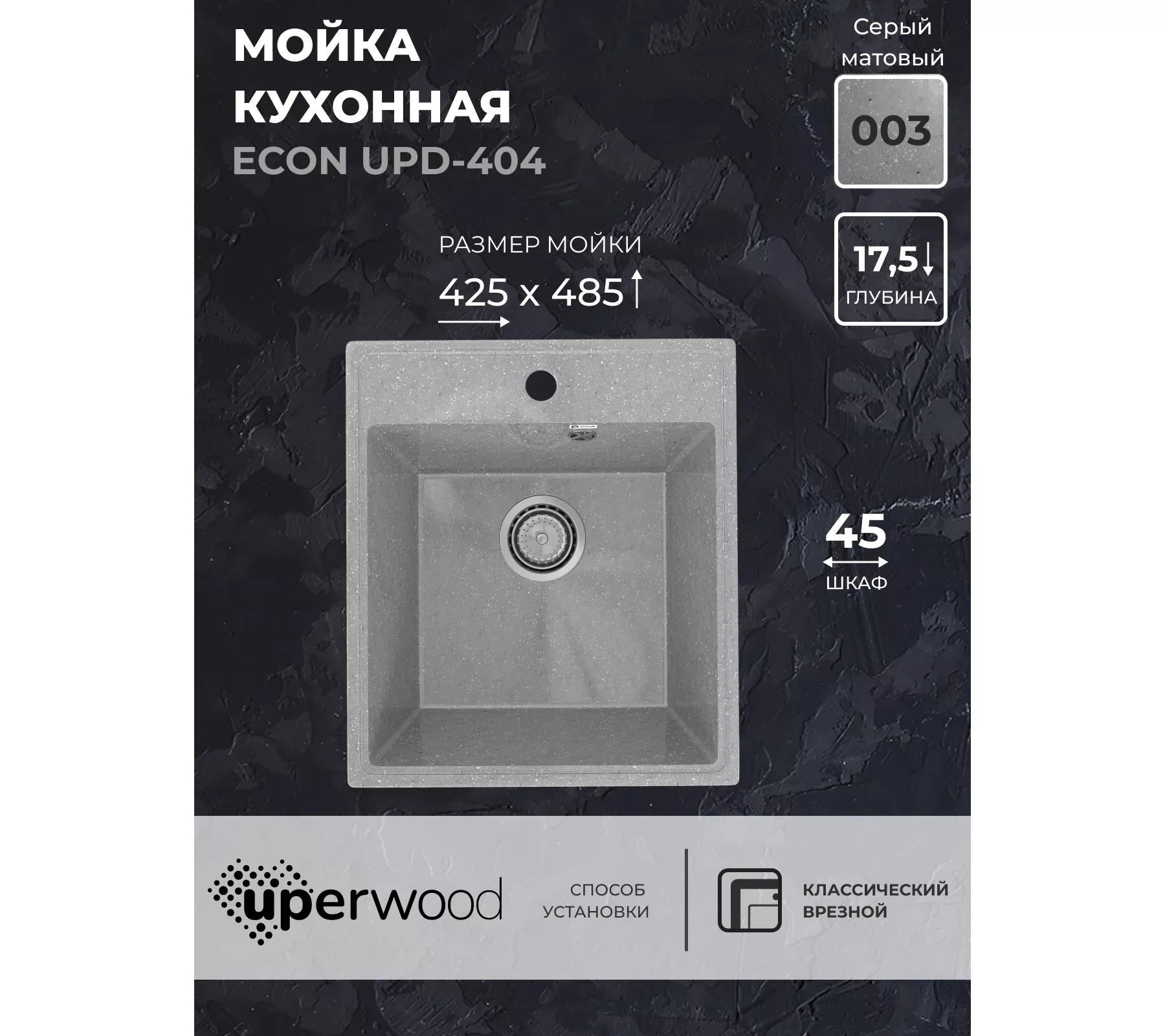 Кухонная мойка из искусственного камня Uperwood ECON UPD-404-003, прямоугольная, серая матовая