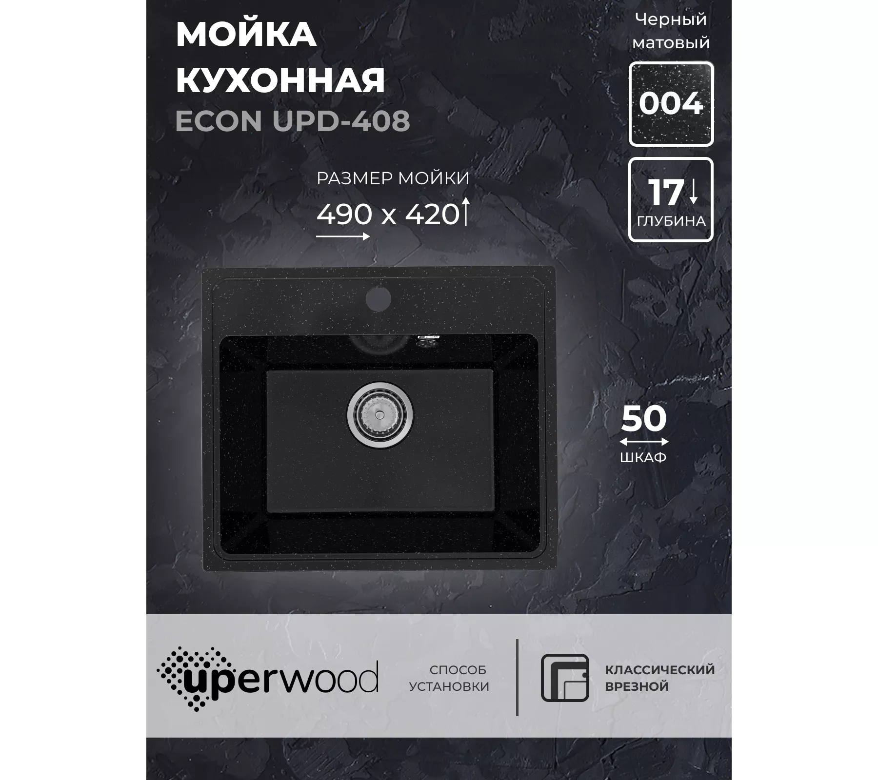 Кухонная мойка из искусственного камня Uperwood ECON UPD-408-004, прямоугольная, черная матовая