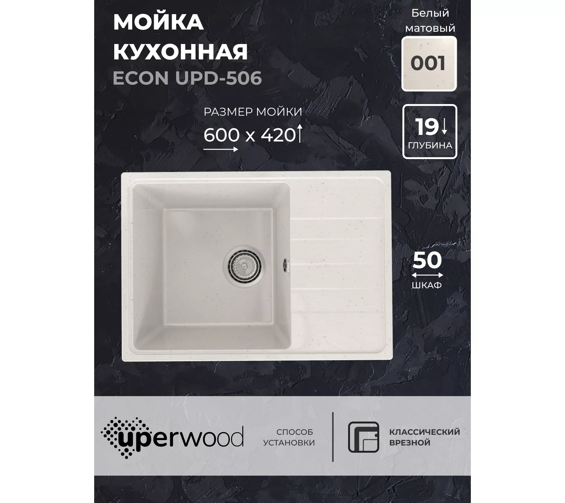Кухонная мойка из искусственного камня Uperwood ECON UPD-506-001, прямоугольная, белая матовая
