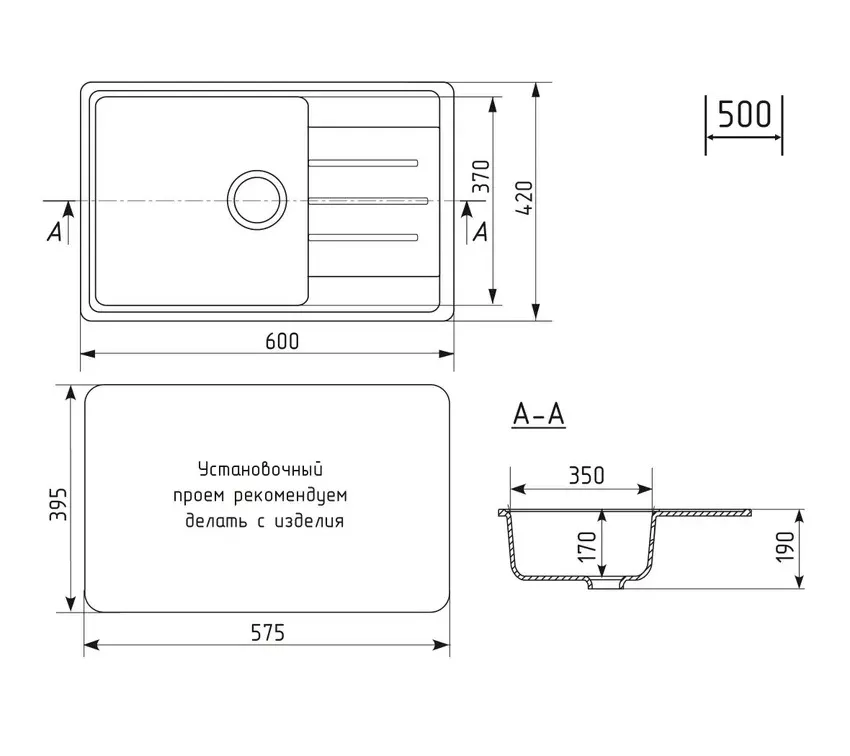 Прямоугольная мойка для кухни из искусственного камня с крылом и увеличенной чашей от бренда Uperwood. Кухонная мойка ECON UPD-506 оборачивамаемая. Крыло мойки может быть расположено как справа, так и слева, отверстие для смесителя отсутствует и вырезается с помощью фрезы на усмотрение покупателя.