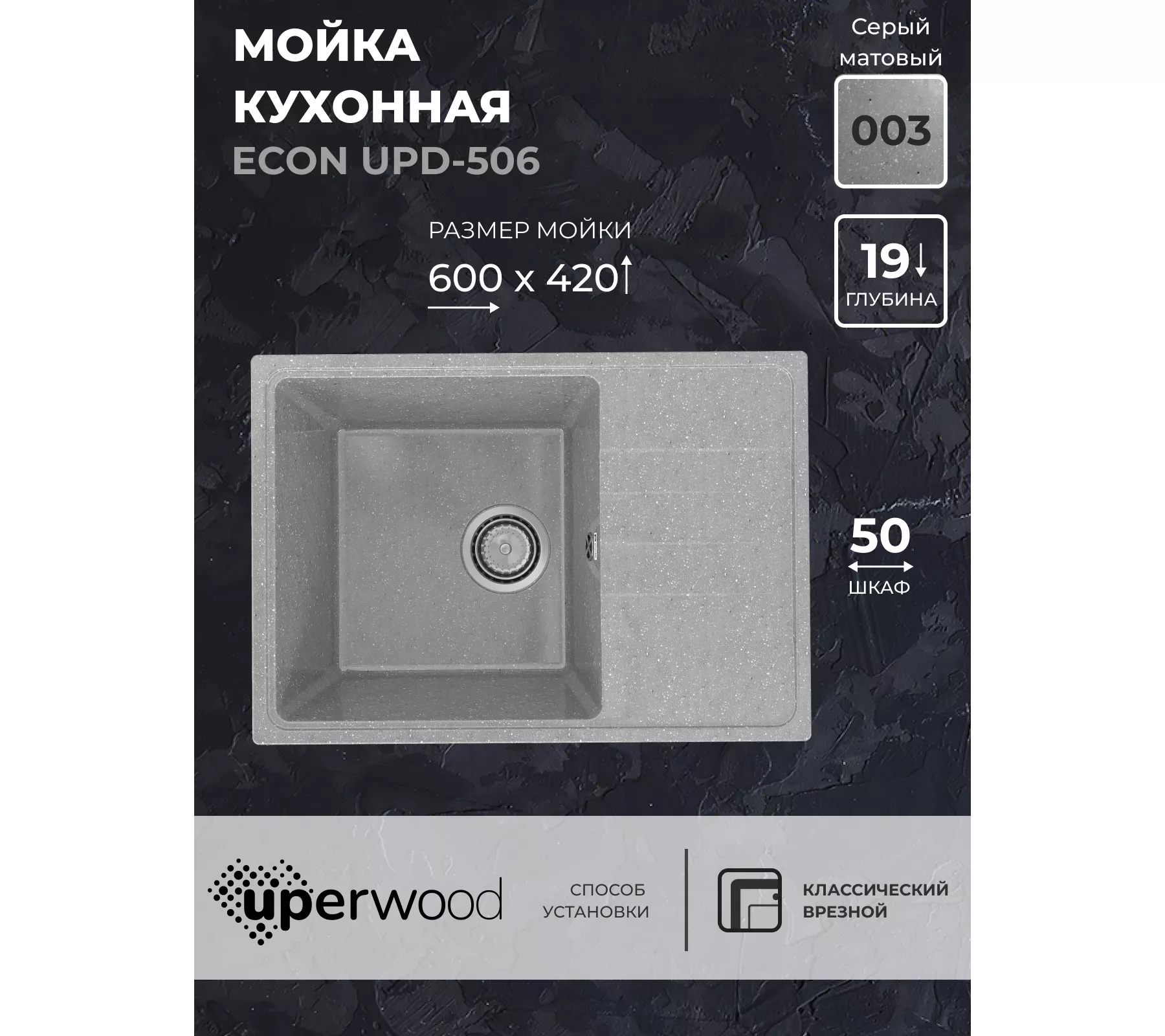 Кухонная мойка из искусственного камня Uperwood ECON UPD-506-003, прямоугольная, серая матовая