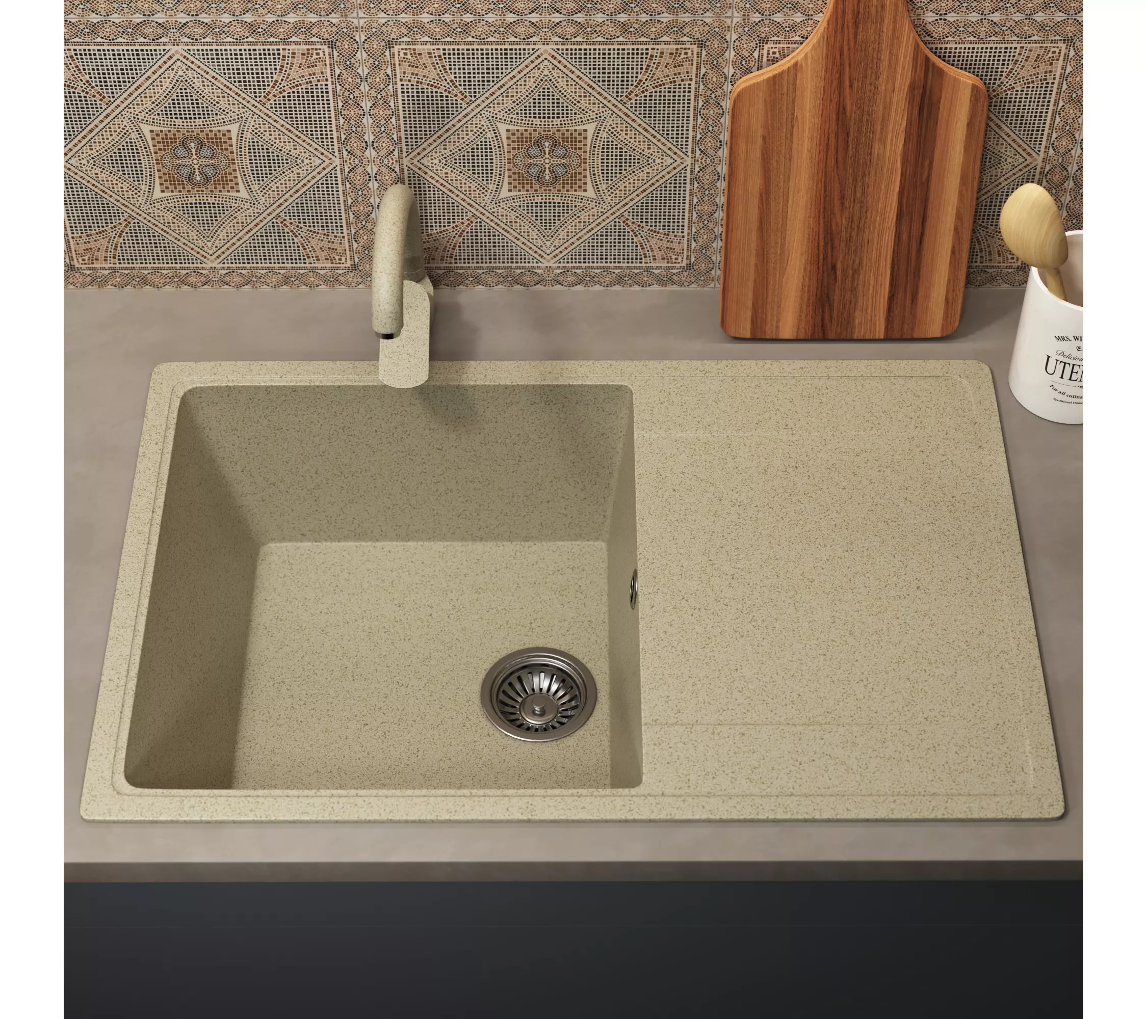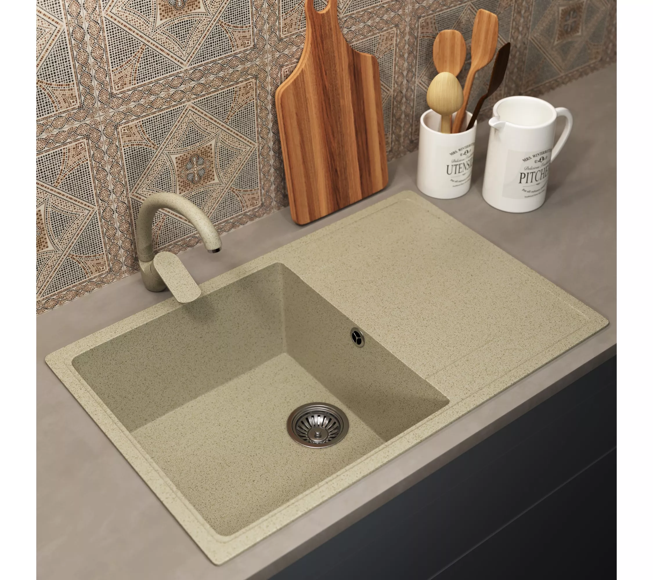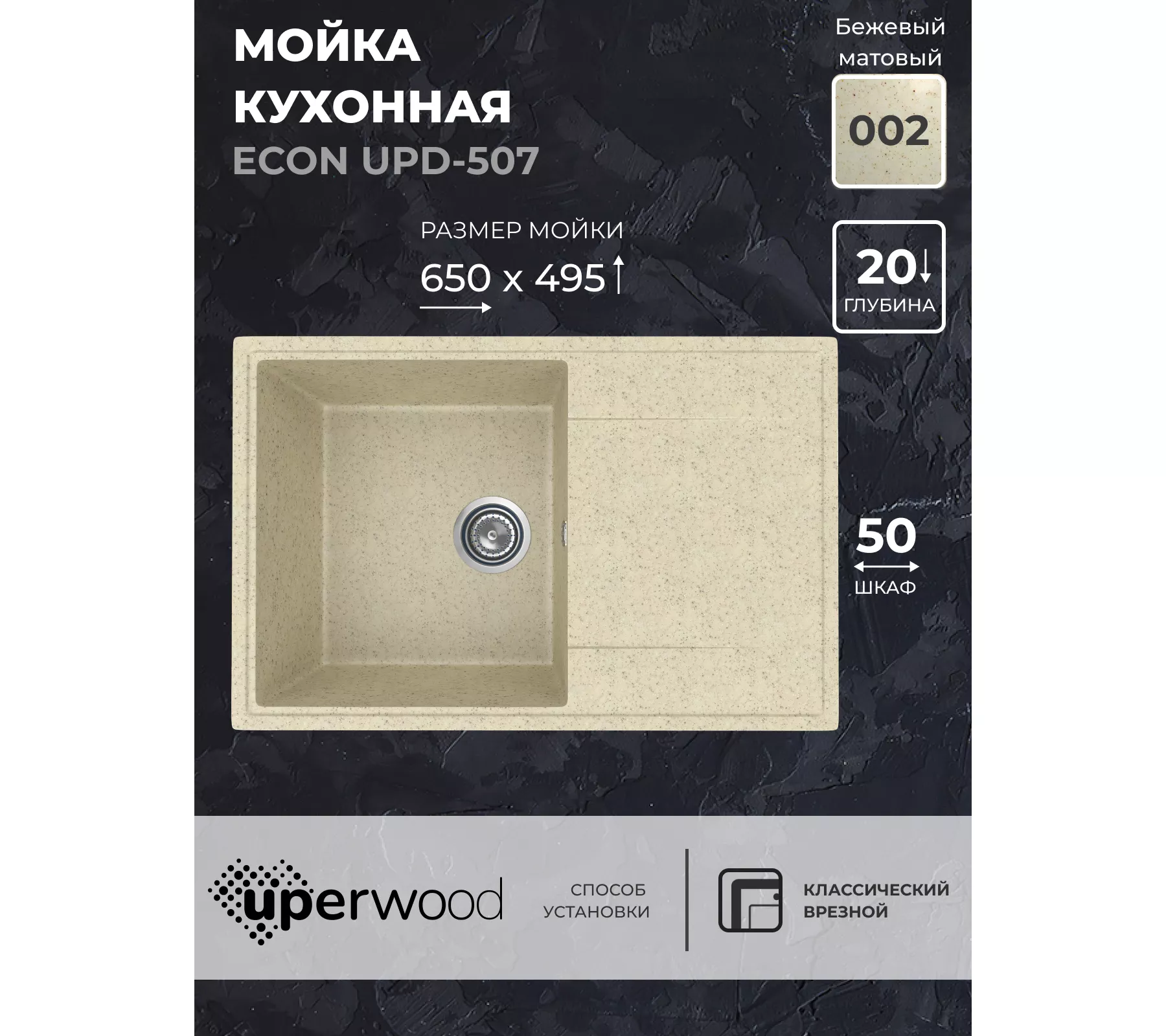 Кухонная мойка из искусственного камня Uperwood ECON UPD-507-002, прямоугольная, бежевая матовая