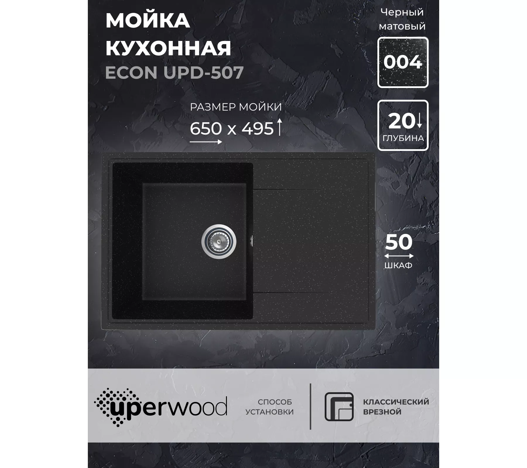 Заводская гарантия составляет 1 год, а срок службы данной мойки, при соблюдении основных правил ухода за ней, составляет более 10 лет. Кухонные мойки Uperwood ECON из искусственного камня с увеличенной чашей отличаются своей практичностью, легкостью в уходе и увеличенным сроком службы по сравнению с керамикой и нержавеющей сталью. Уникальная фактура камня смотрится благородно, вписывается в любой интерьер и делает его утонченным. Мойка гладкая и приятная на ощупь, матовое покрытие. При эксплуатации не издает неприятного шума и грохота.
