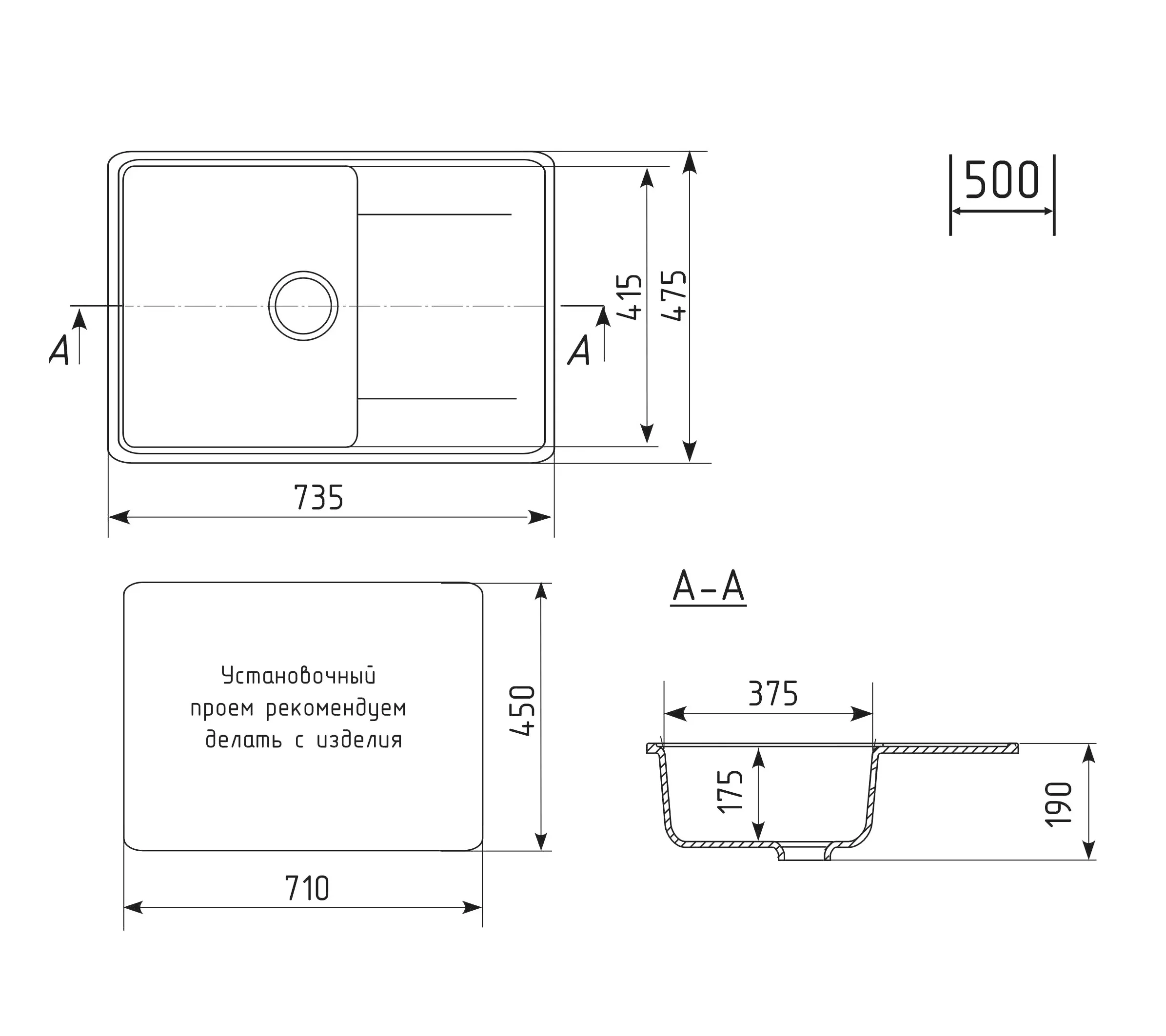 Односекционная реверсивная мойка Uperwood ECON UPD-507 с плоским крылом является оборачиваемой - крыло может располагаться как справа, так и слева. Отверстие для смесителя отсуствует и вырезается на усмотрение покупателя с той стороны, где предполагается расположение крыла. Фреза в комплект не входит и покупается отдельно.