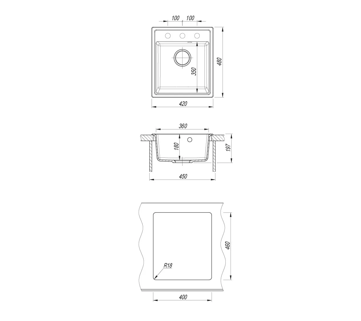 Кухонная мойка из искусственного камня Uperwood UPD-406, 42х48 прямоугольная, цвет уголь