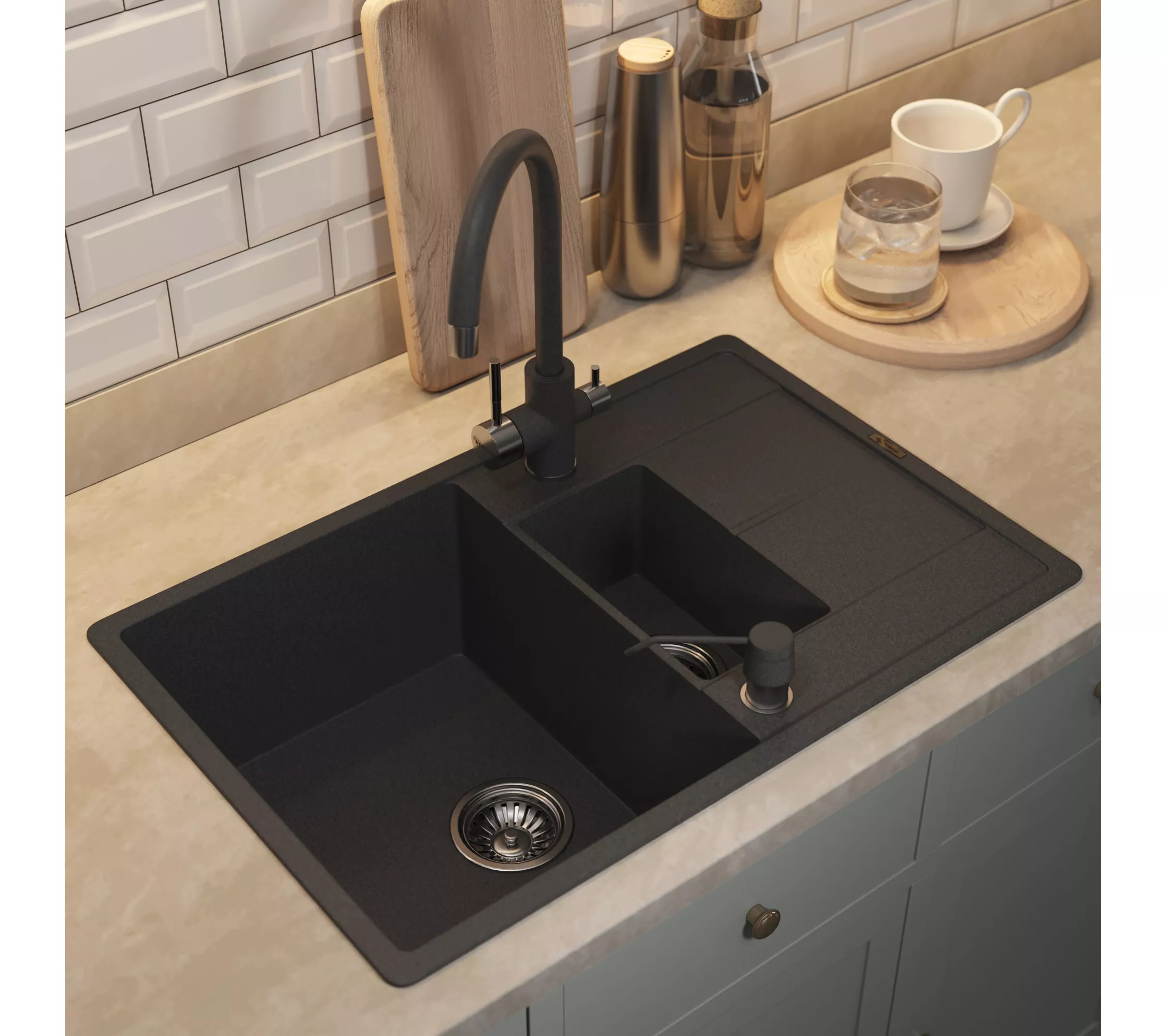Уникальная фактура камня смотрится благородно, вписывается в любой интерьер и делает его утонченным. Мойка гладкая и приятная на ощупь, прочное матовое покрытие защищает мойку от любых внешних воздействий. При эксплуатации изделие не издает неприятного шума и грохота. На выбор покупателя предлагается 4 универсальных цвета для каждой модели мойки: белый, серый, бежевый и черный.