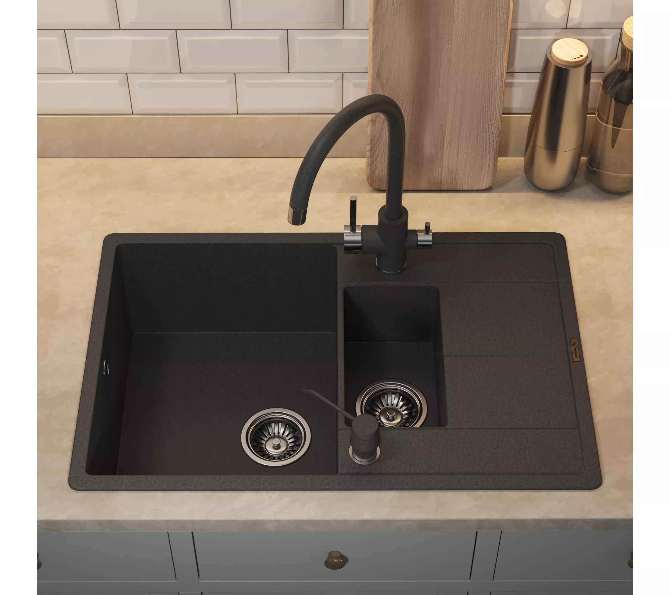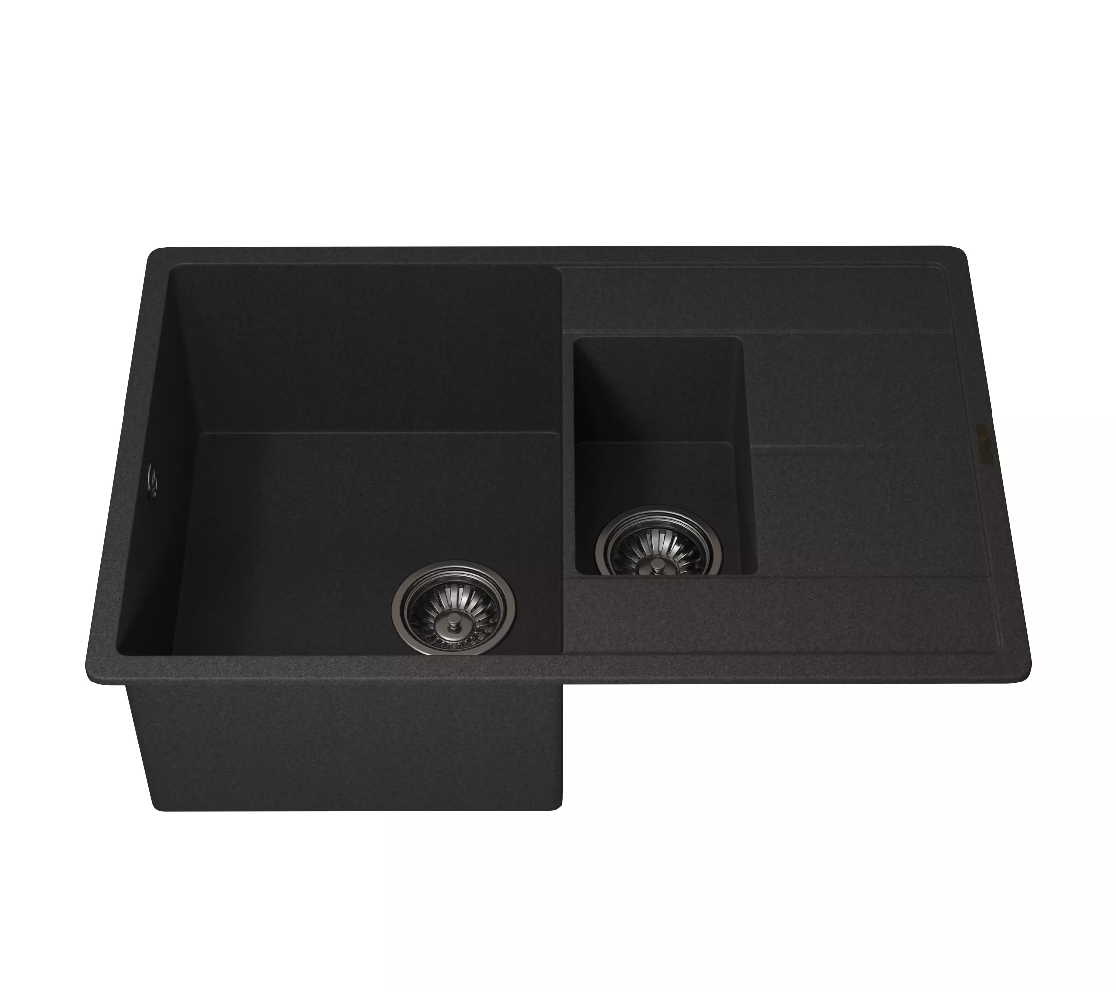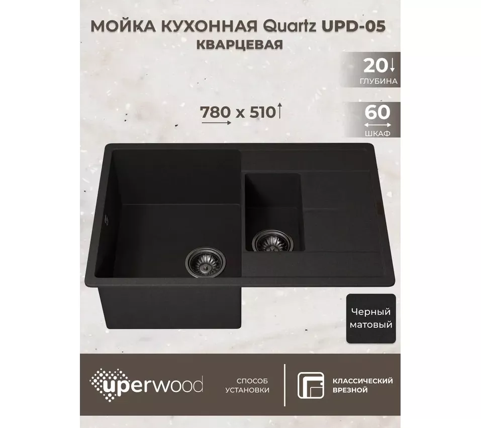 Кухонная мойка кварцевая Uperwood Quartz Premium UPD-05-04, прямоугольная двухсекционная, черная