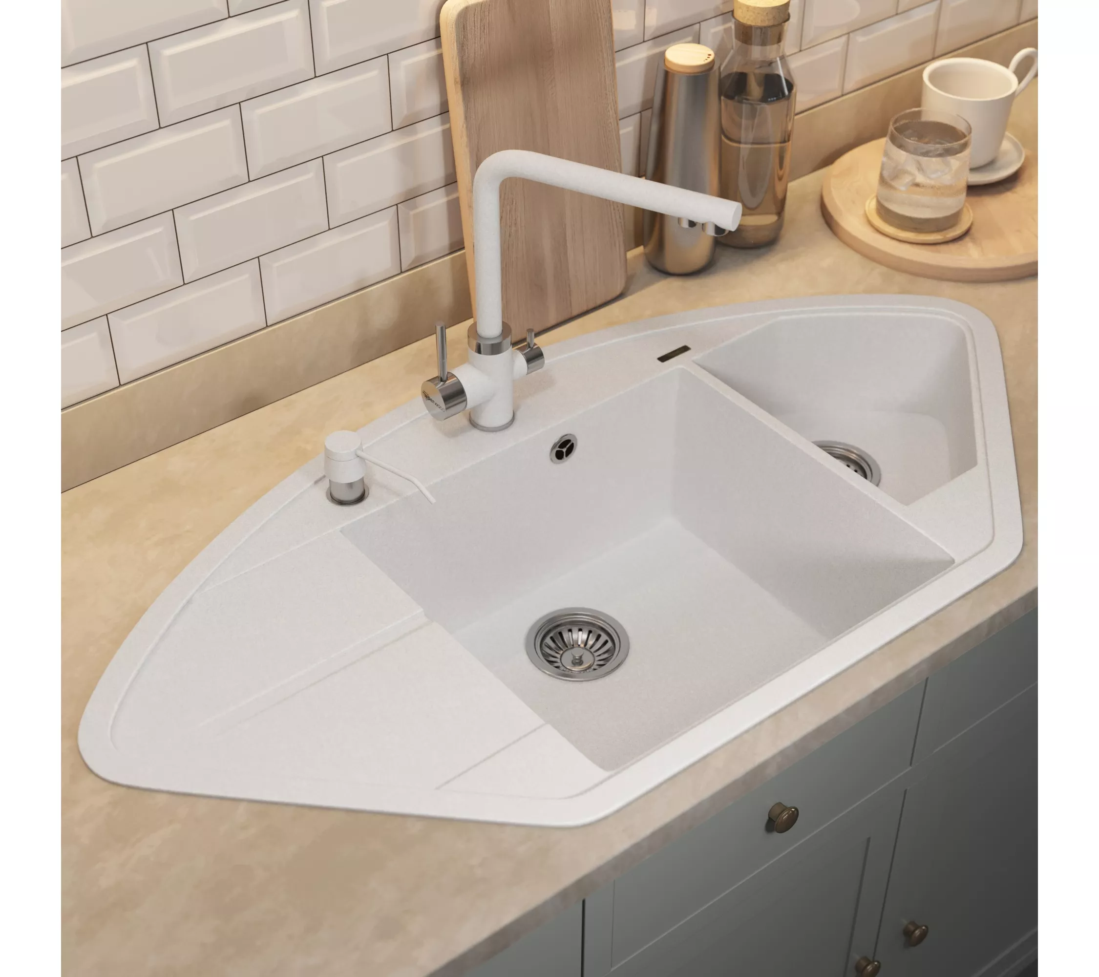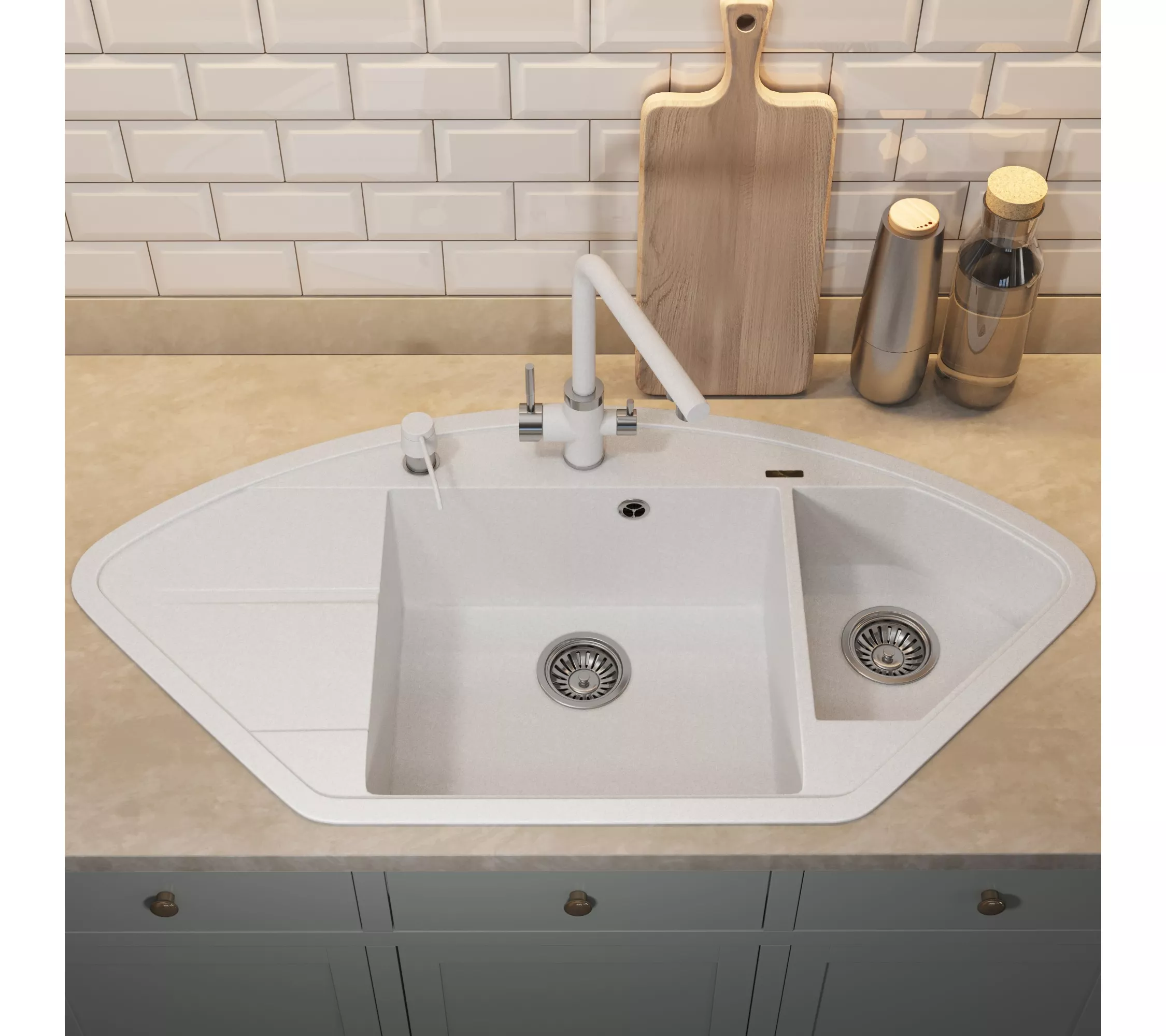 Угловая мойка для кухни Quartz UPD-06 от бренда Uperwood имеет 2 чаши и выполнена из кварцевого композита. Мойка оснащена небольшим по размеру крылом с левой стороны. Отверстие для смесителя вырезается с помощью фрезы на усмотрение покупателя. Кварцевые кухонные мойки Uperwood отличаются своей практичностью, легкостью в уходе и увеличенным сроком службы по сравнению с искусственным камнем или нержавеющей сталью.