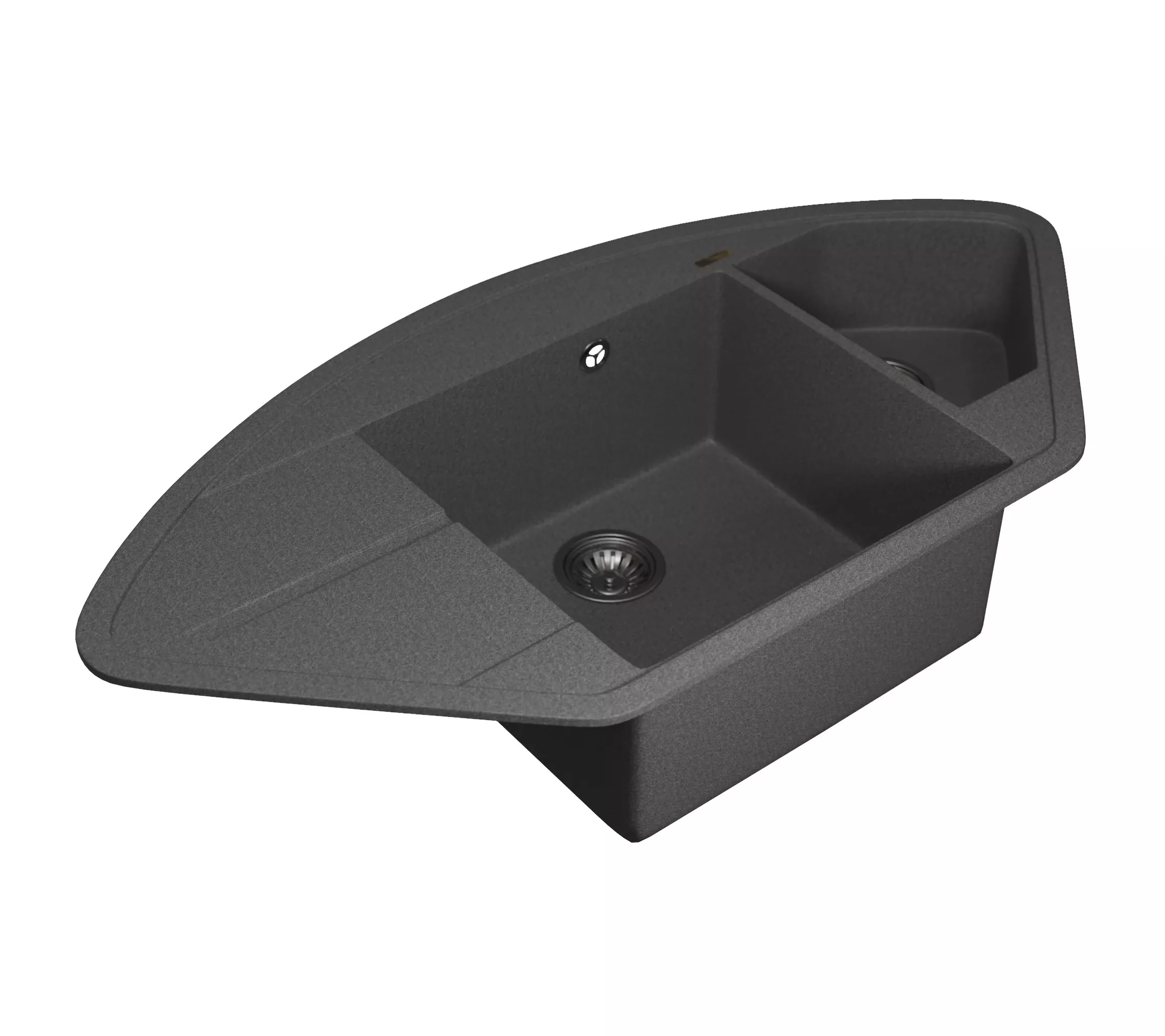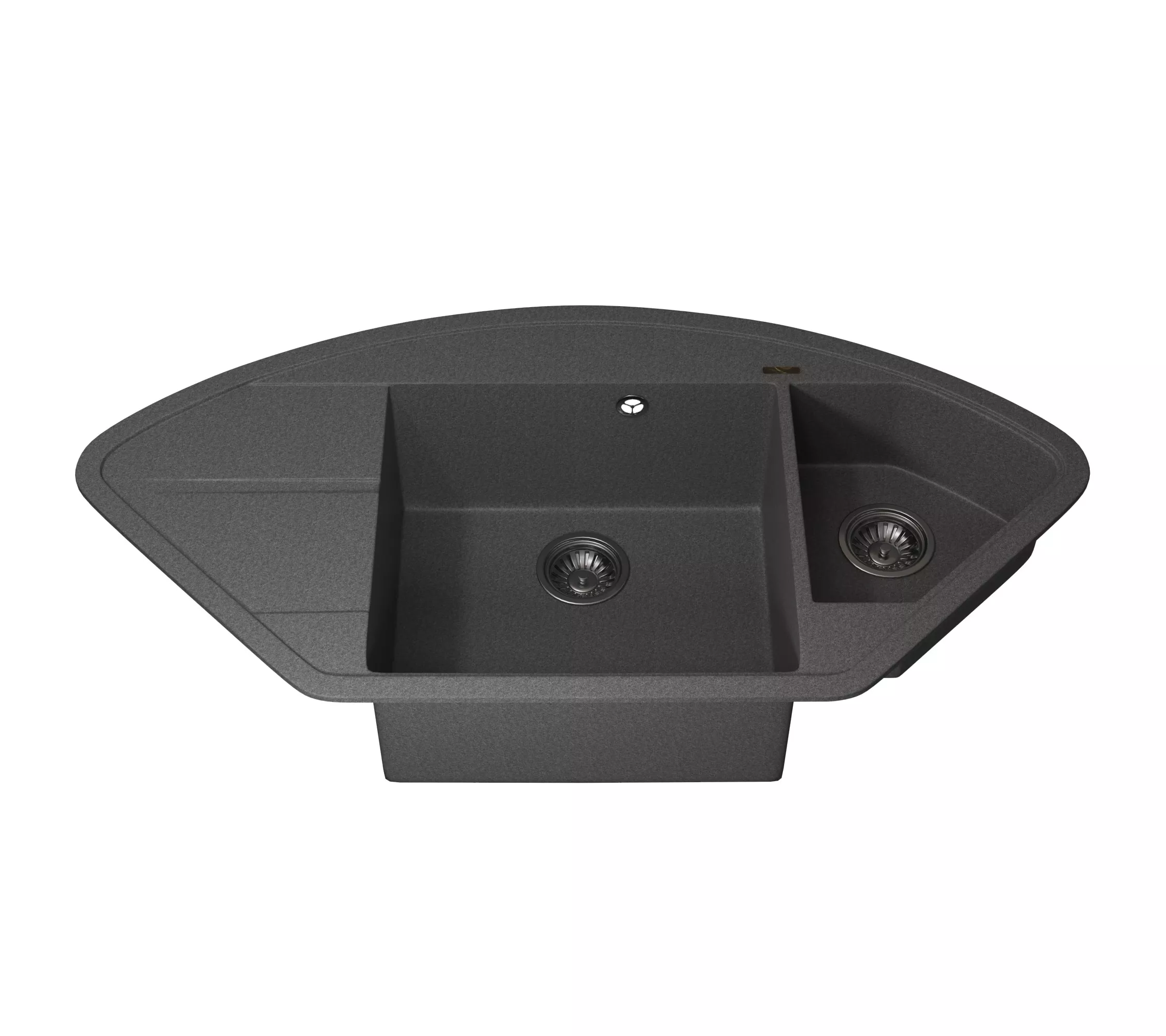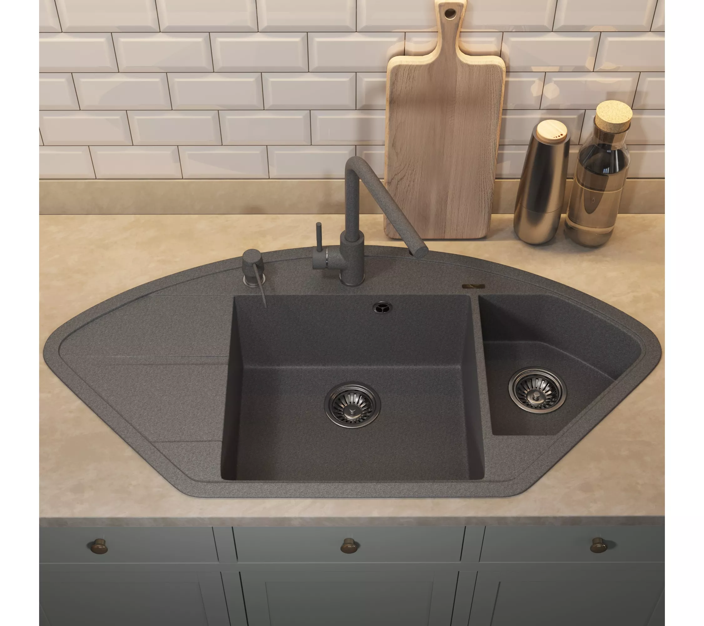 Кухонная мойка кварцевая Uperwood Quartz Premium UPD-06-03, угловая двухсекционная, серая