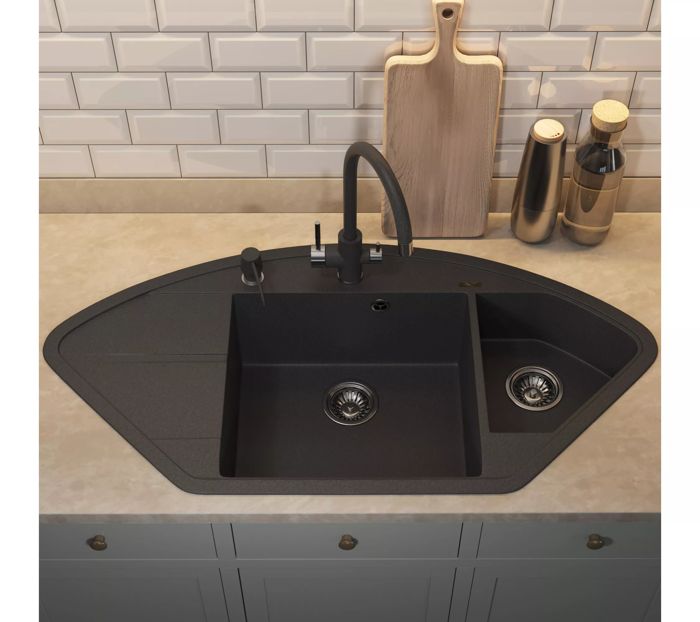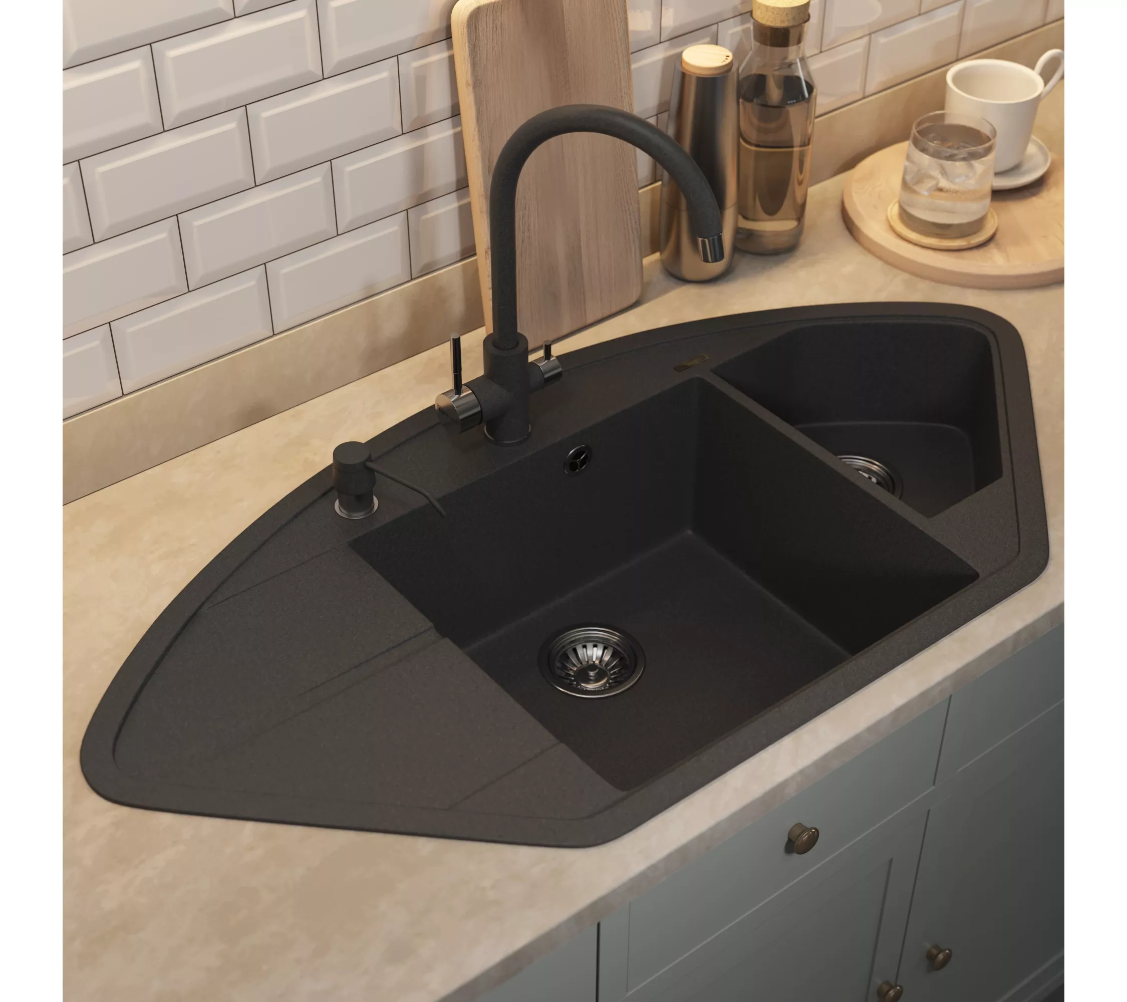 Угловая мойка для кухни Quartz UPD-06 от бренда Uperwood имеет 2 чаши и выполнена из кварцевого композита. Мойка оснащена небольшим по размеру крылом с левой стороны. Отверстие для смесителя вырезается с помощью фрезы на усмотрение покупателя. Кварцевые кухонные мойки Uperwood отличаются своей практичностью, легкостью в уходе и увеличенным сроком службы по сравнению с искусственным камнем или нержавеющей сталью.