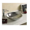 Фаянсовая, накладная. Устанавливается на столешницу. Диаметр слива: 45 мм