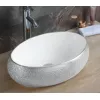 Фаянсовая, накладная. Устанавливается на столешницу. Диаметр слива: 45 мм