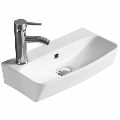 Фаянсовая, подвесная, накладная. Крепится на стену, устанавливается на столешницу, на тумбу. Диаметр слива: 45 мм