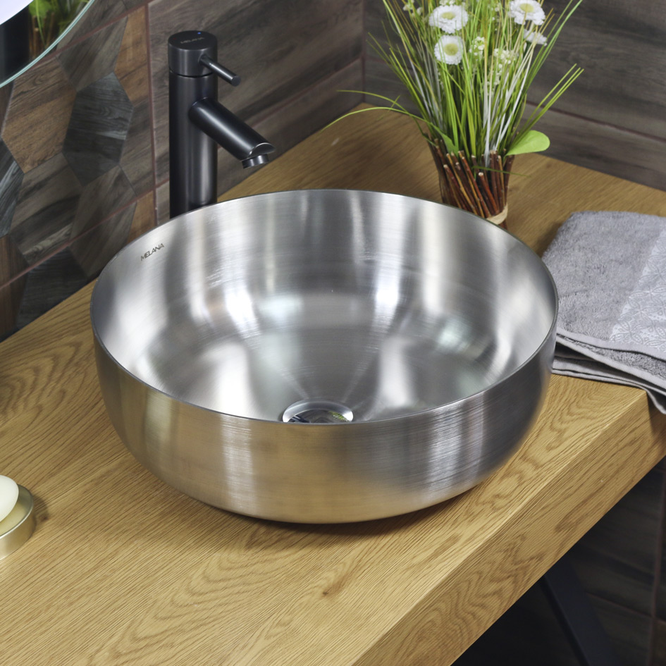 Раковина 400 Lake MELANA Profline САТИН накладная круглая 400, Сифон, донный клапан