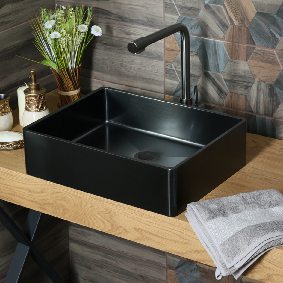 Раковина D4837B Castle MELANA ProfLine 1,2 мм черная накладная, Сифон, донный клапан