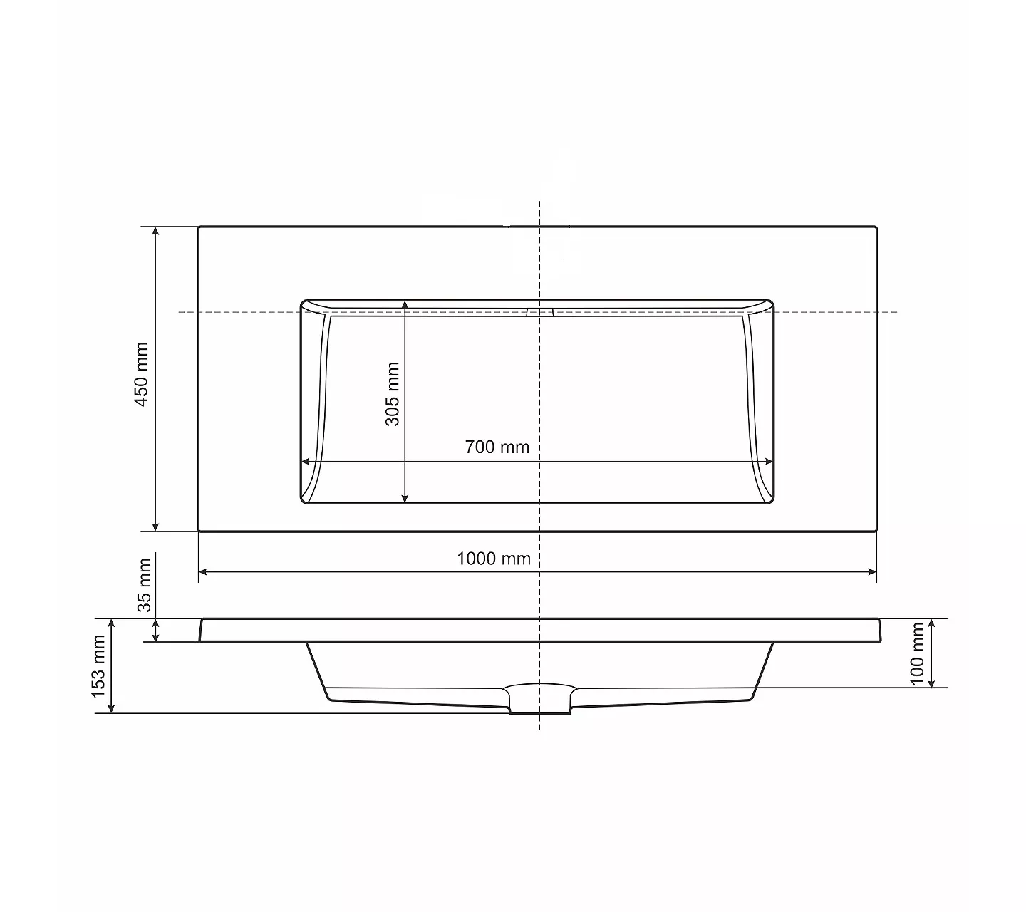 Раковина 100 см Uperwood Infinity (1000х450х153 мм) предназначена для установки на подвесные тумбы из коллекции Uperwood Tanos шириной 100 см: