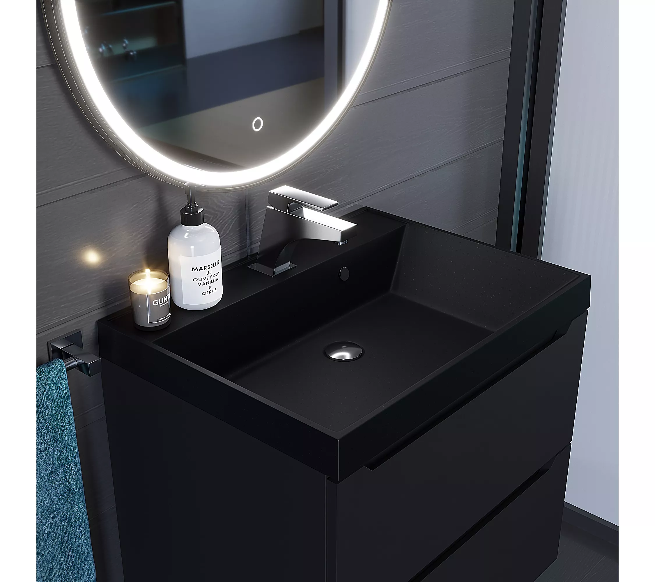 -Тумба под раковину для ванной комнаты Uperwood Tanos подвесная 60 см, черная (арт. 291020230)