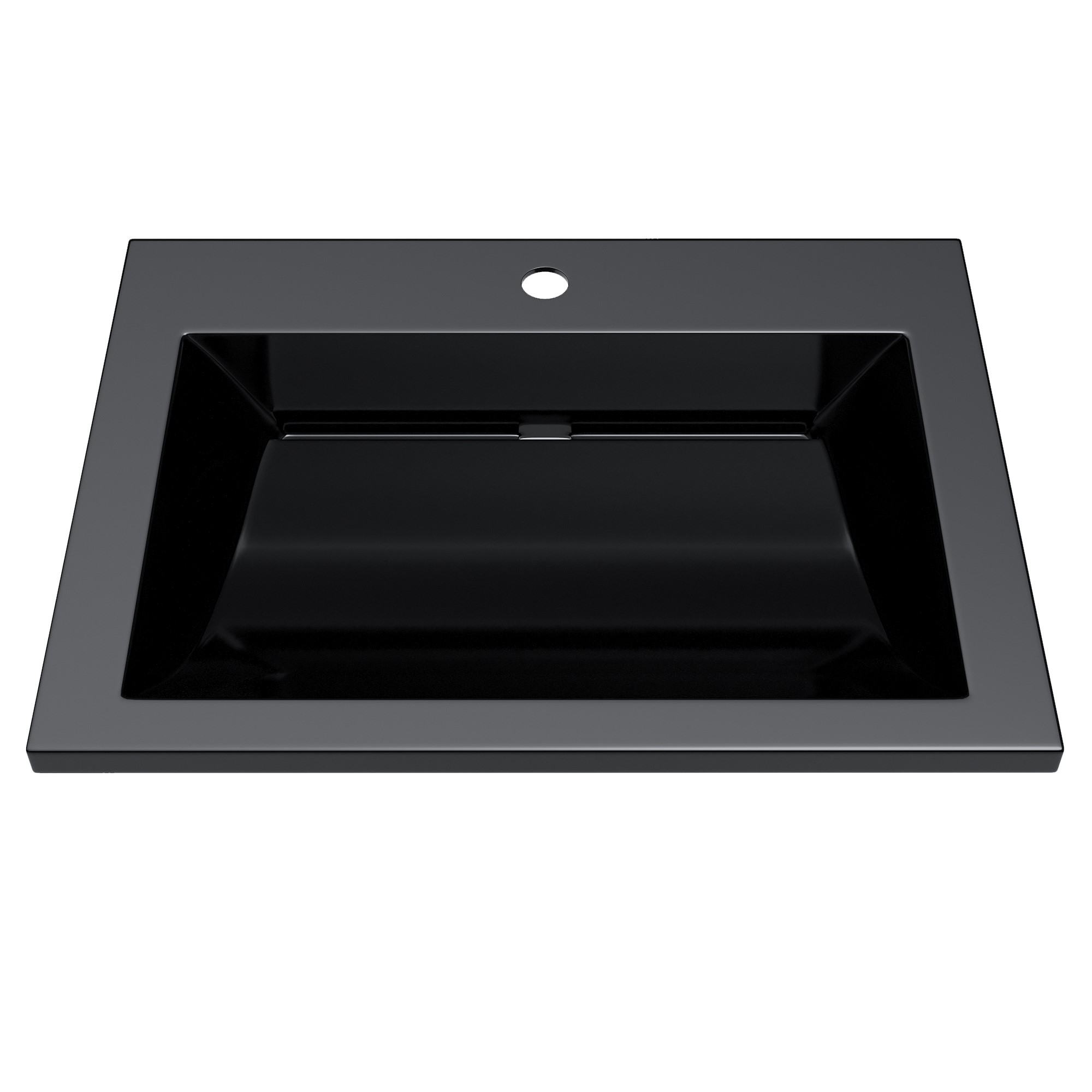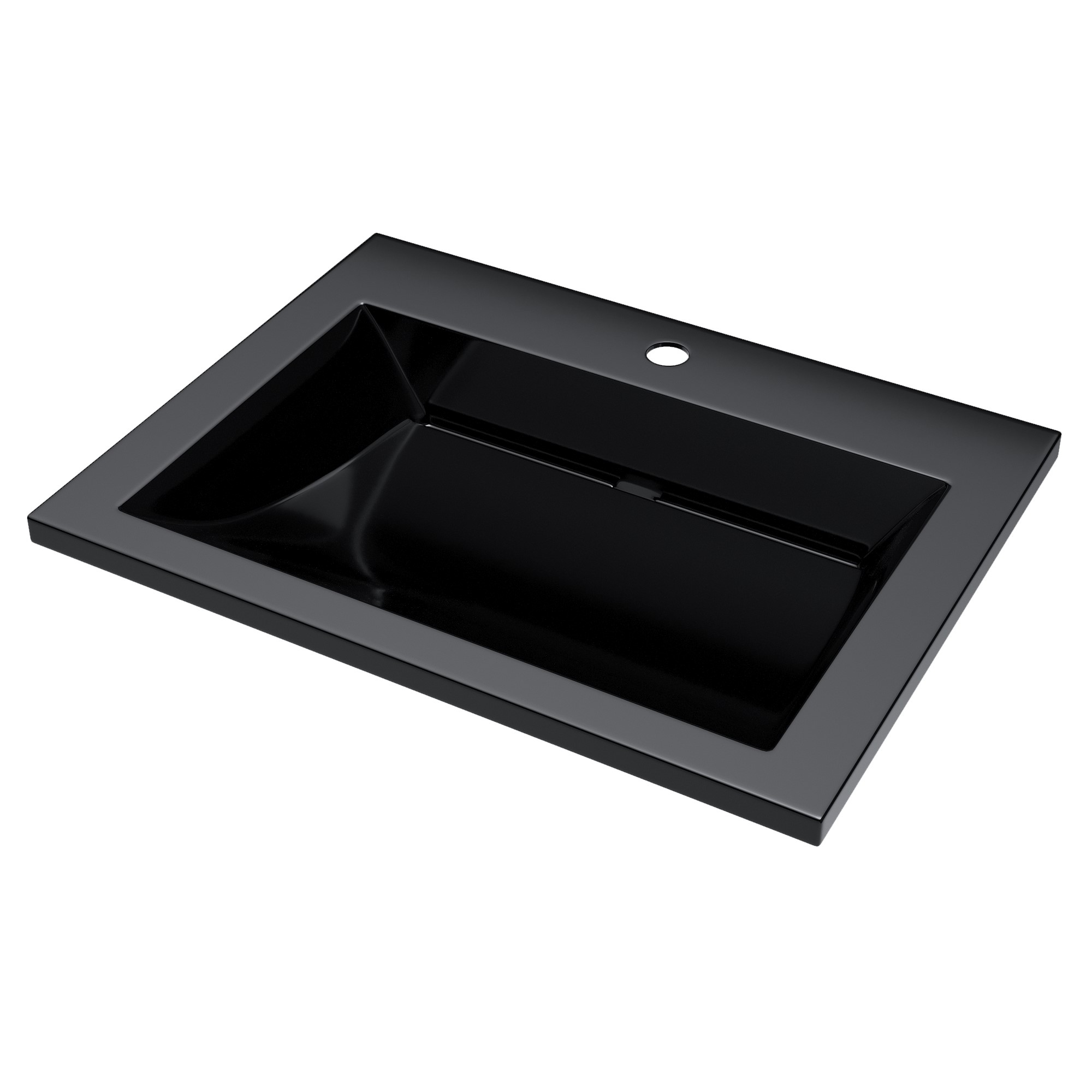 Раковина со щелевым сливом Uperwood Infinity имеет отверстие для установки смесителя, а также бортик для размещения ванных принадлежностей.