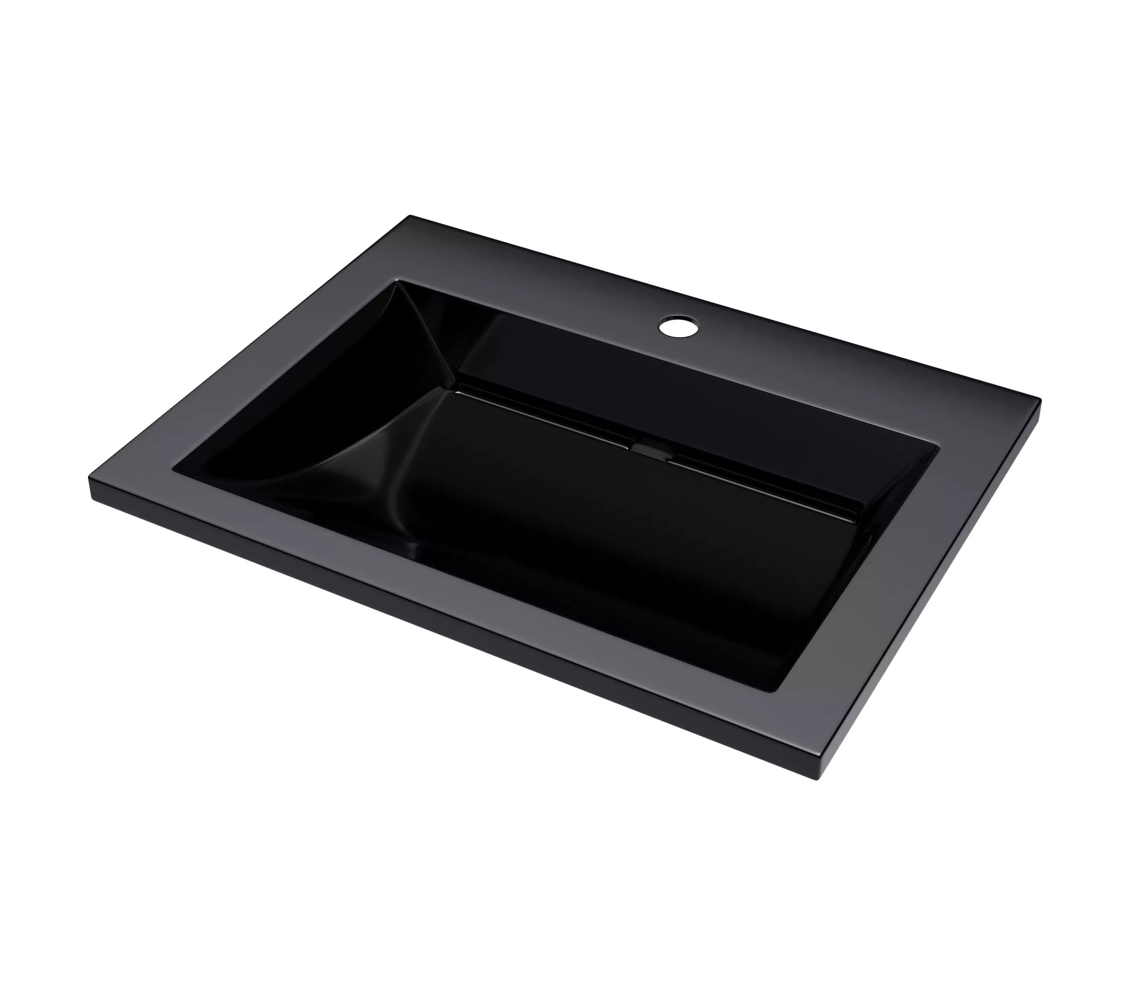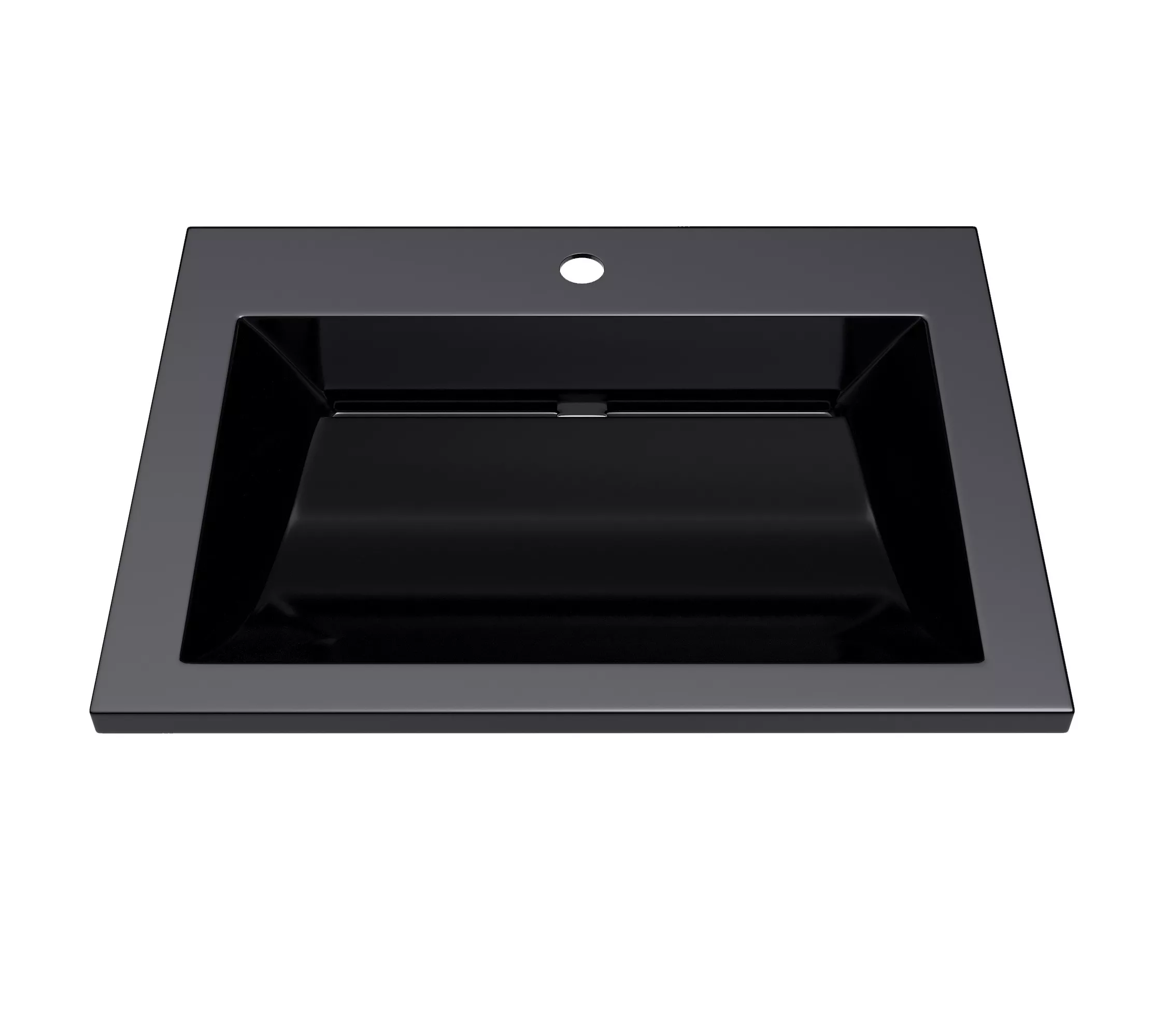 Раковина со щелевым сливом Uperwood Infinity имеет отверстие для установки смесителя, а также бортик для размещения ванных принадлежностей.