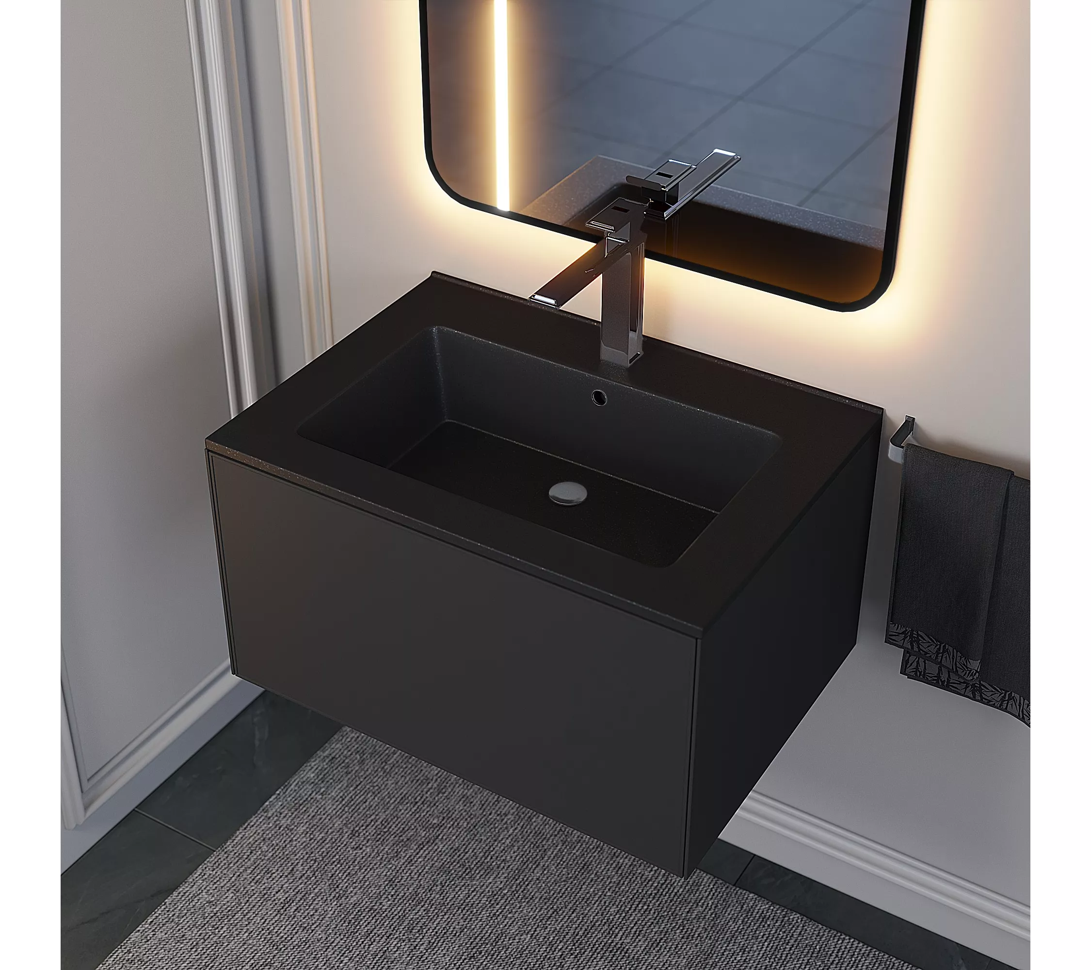 Цветовые решения на выбор: Белый – «Жасмин», Серый – «Бетон», Черный – «Уголь» и «Космос».Экологичность кварцевого композита обеспечивает абсолютную безопасность для здоровья человека.