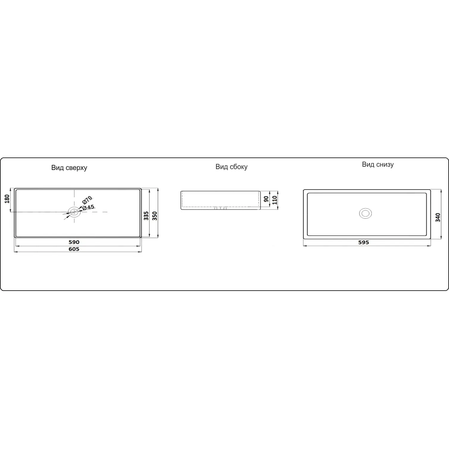 - Диаметр слива: 45 мм