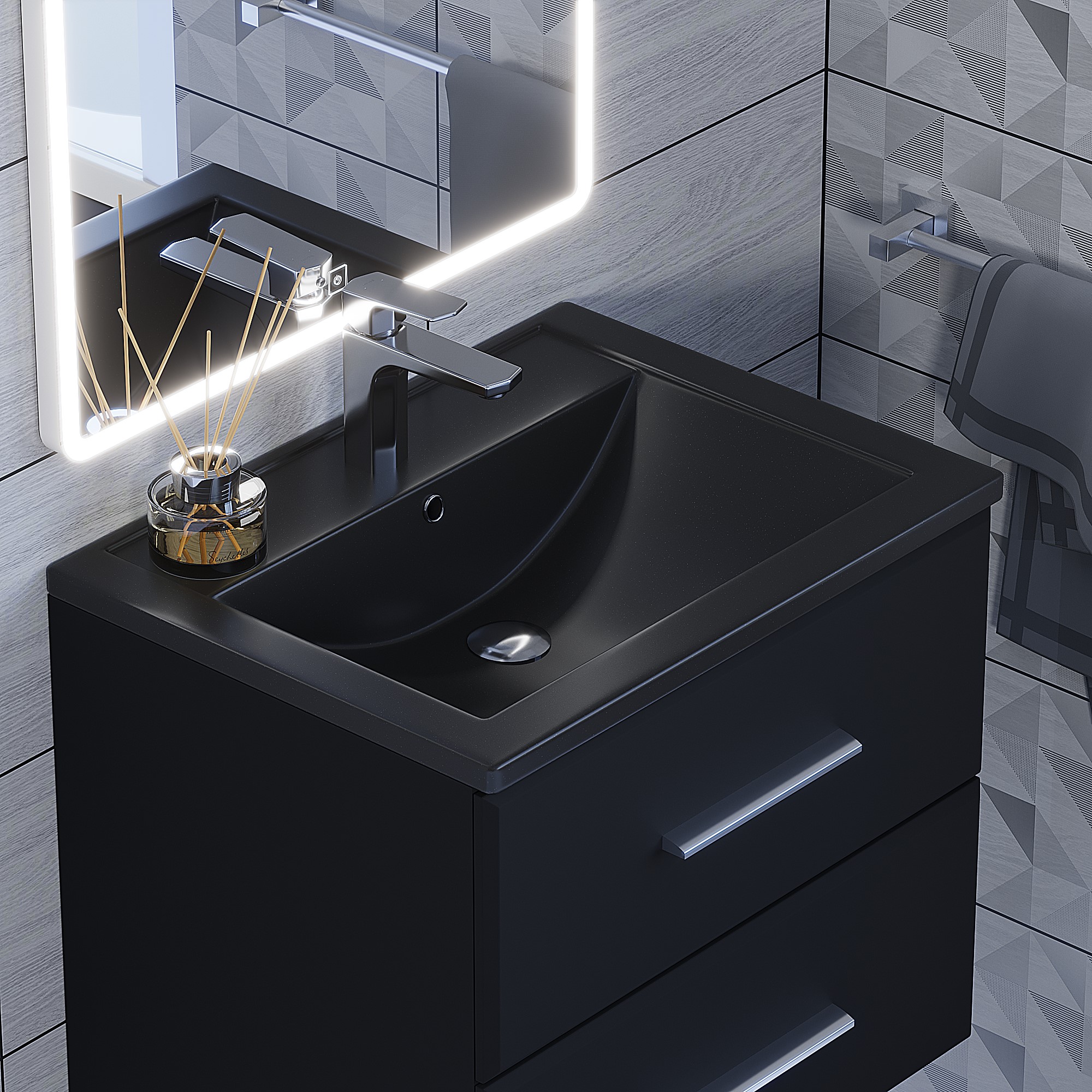 Цветовые решения на выбор: Белый – «Жасмин», Серый – «Бетон», Черный – «Уголь» и «Космос».Для раковин Uperwood Foster Quartz шириной 60 см подходят: