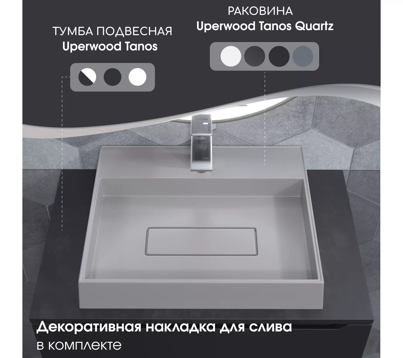 Для установки под раковины Tanos Quartz рекомендуем рассмотреть тумбы из коллекции Uperwood Tanos шириной от 60 см.