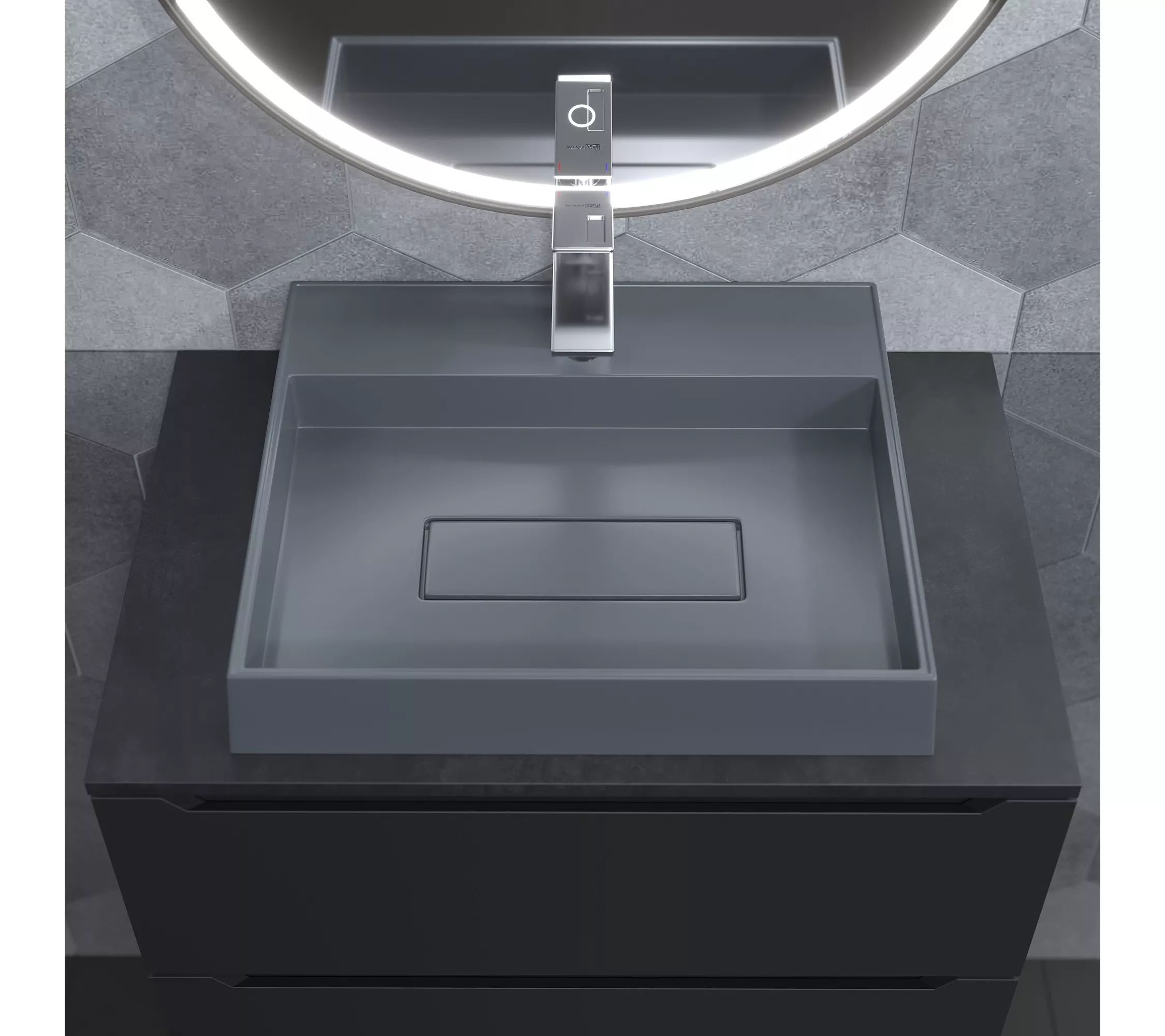 Раковины Tanos Quartz имеют отверстие для установки смесителя и бортик для размещения ванных принадлежностей. Декоративная накладка для слива раковины входит в комплект поставки.