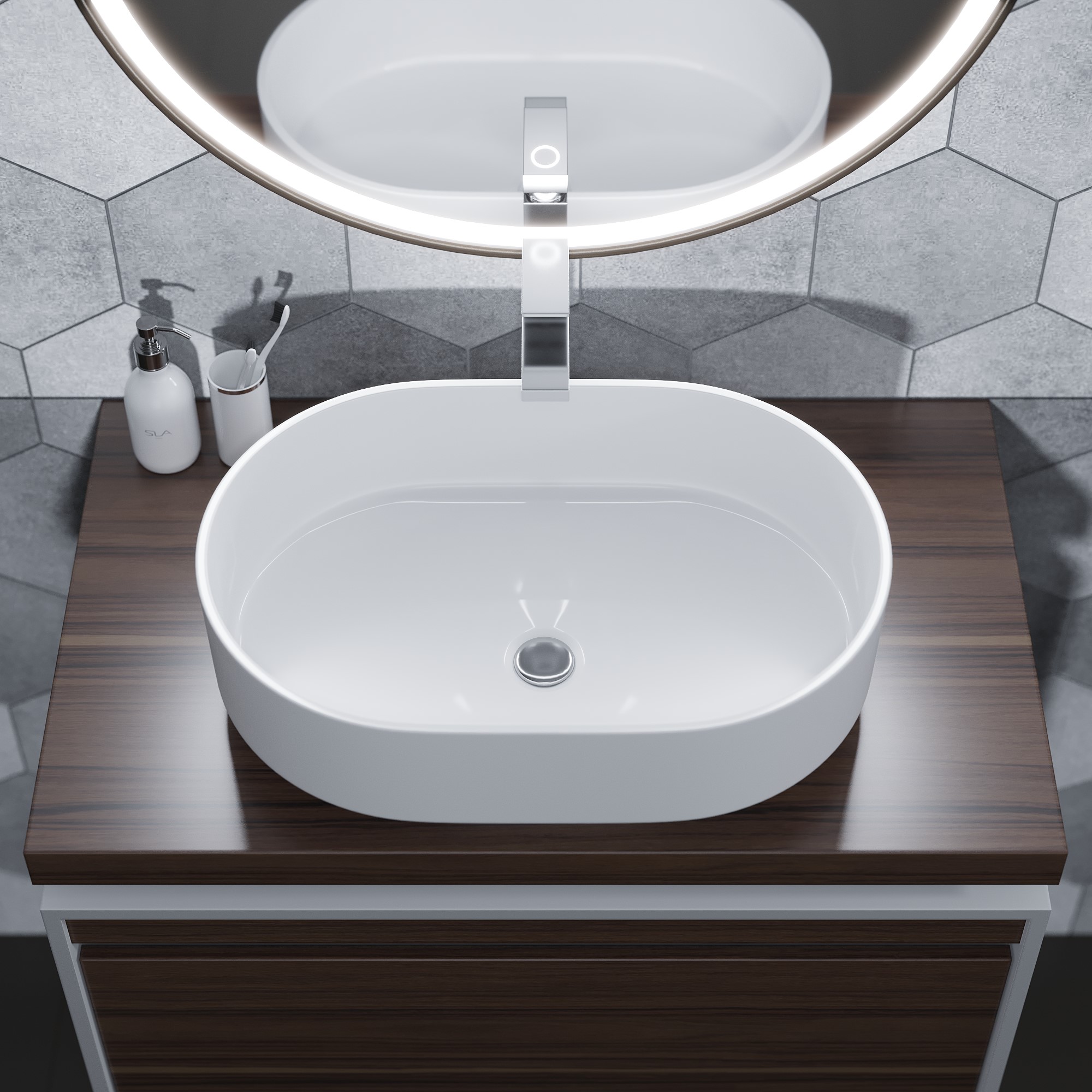 Накладная раковина для ванной комнаты из литьевого мрамора Uperwood Aura шириной 60 см станет изюминкой вашей ванной комнаты и притянет взгляды гостей. Раковина Uperwood Aura 60 см без отверстия под смеситель и перелива.Покрытие раковины гелькоут - оно выполняет как декоративную, так и защитную функцию. Материал гарантирует гигиеническую безопасность изделий и характеризуется высокими бактерицидными свойствами.Кроме того, раковина из коллекции Uperwood Aura обладает уникальными характеристиками прочности, устойчивости к истиранию, а также выдающейся стойкостью и качеством цвета.