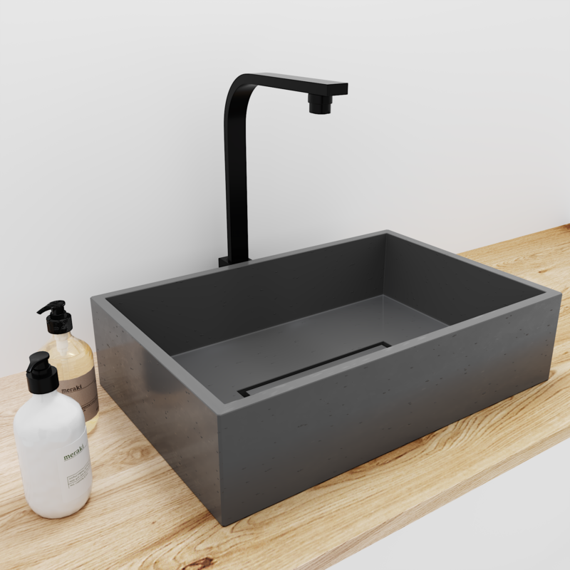 Раковина для ванной комнаты накладная, бетонная Uperwood Angkor 60 см, прямоугольная, графит, на тумбу, мойка, умывальник для туалета.Умывальник на столешнице популярен своей абсолютной простотой и чистой формой, сочетающей бетон с прямыми углами. Минималистский, вневременной и функциональный выбор, который удивит вас очень тонкими стенами и простотой обслуживания.Раковина смотрится очень оригинально благодаря закрытому сливу.Как и любая другая бетонная раковина, изготовленная вручную, имеет уникальную фактуру и цветовые оттенки.