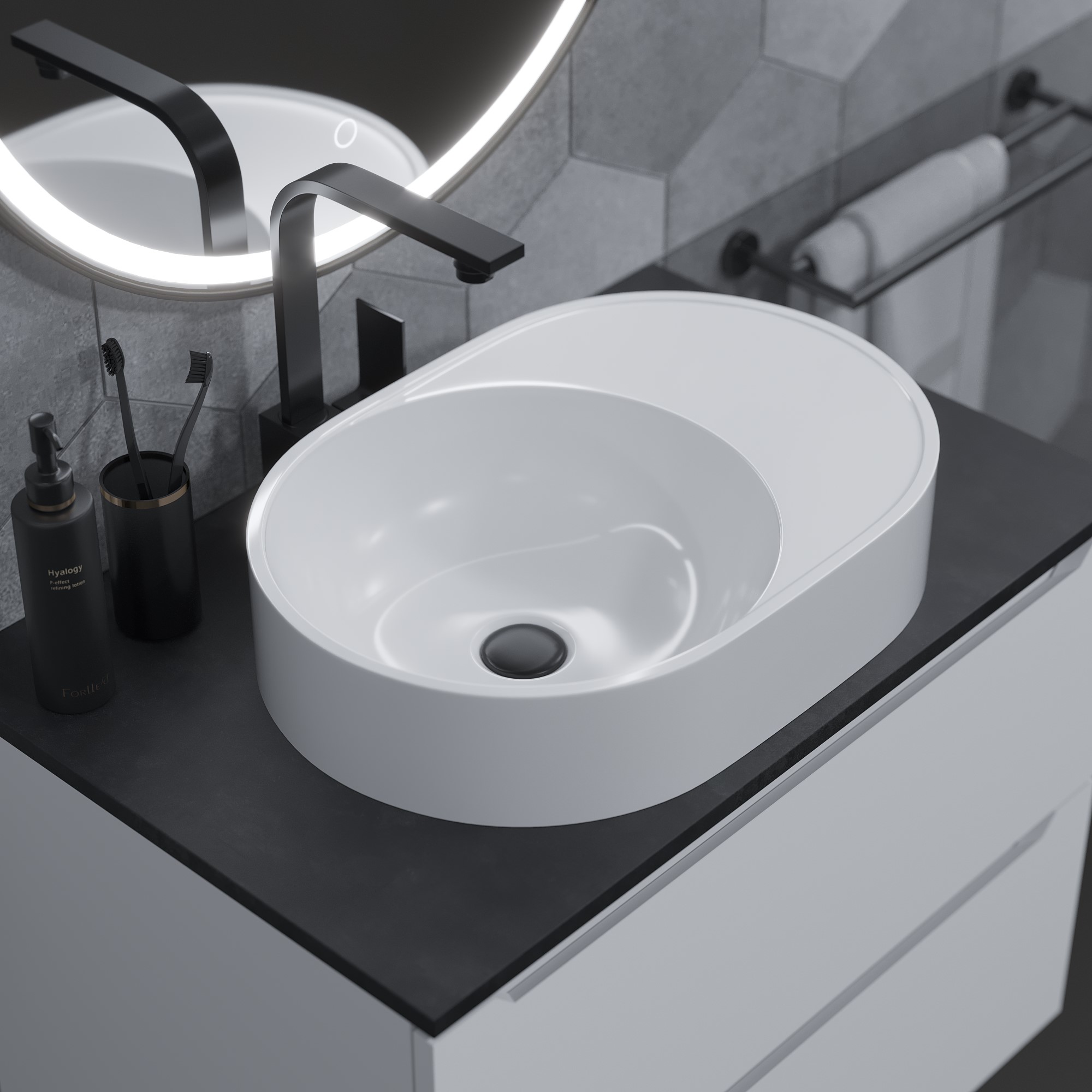 Раковина накладная для ванной Uperwood Luna 50х35х10 см, овальная, белая глянцевая
