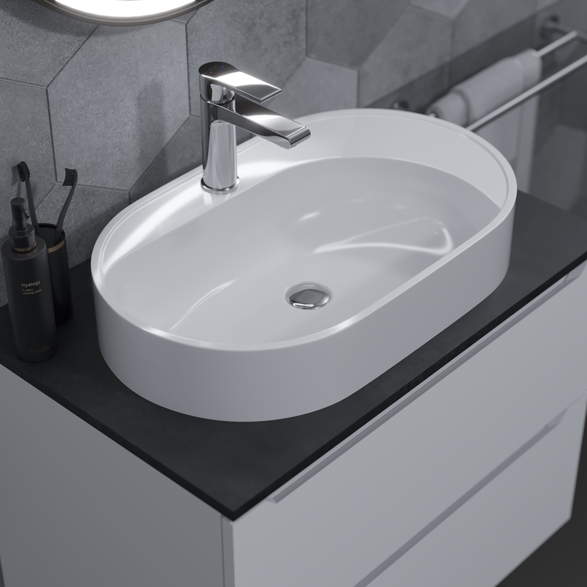 Раковина накладная для ванной Uperwood Luna 60х36х11,5 см, овальная, белая глянцевая
