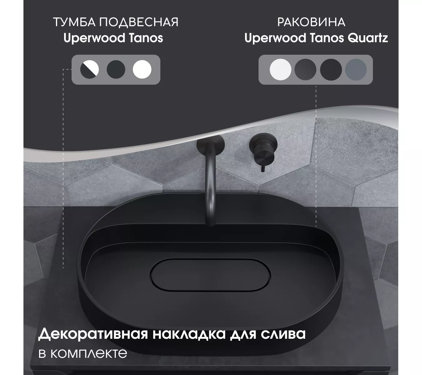 Для установки под раковины Tanos Quartz рекомендуем рассмотреть тумбы из коллекции Uperwood Tanos шириной от 60 см. Дополнительно потребуется приобрести столешницу, подходящую к габаритам изделий.