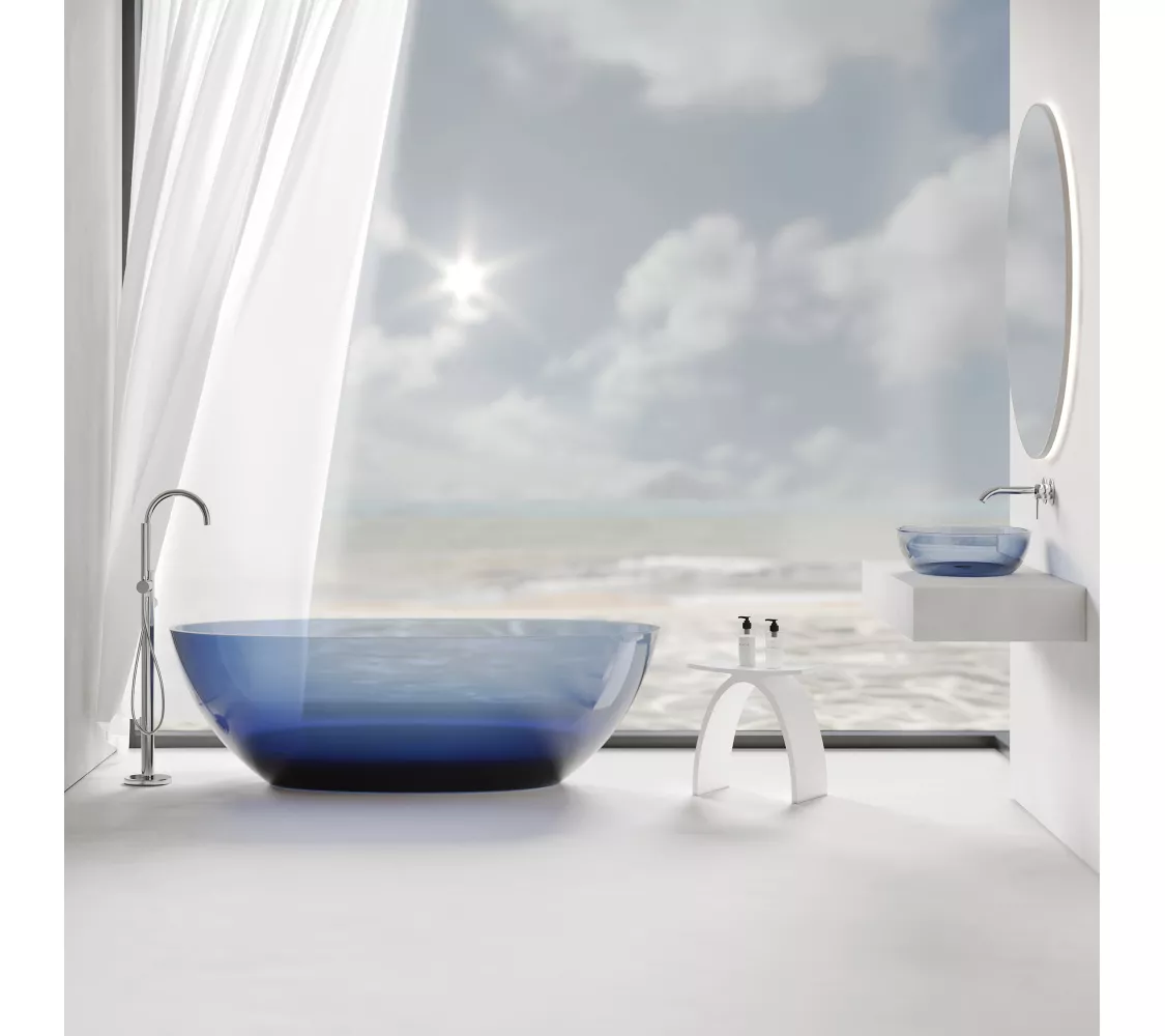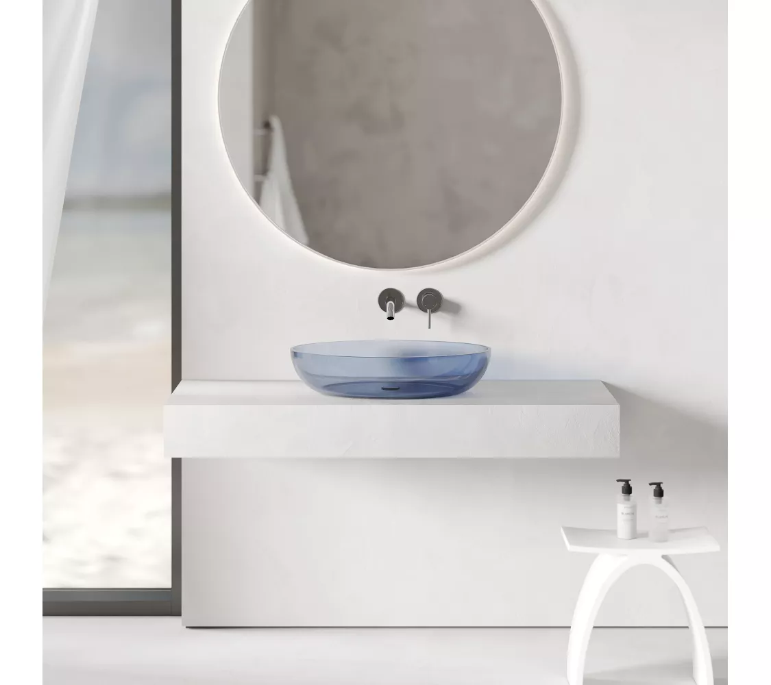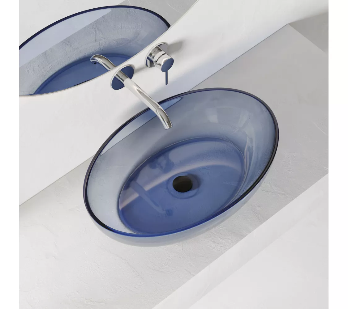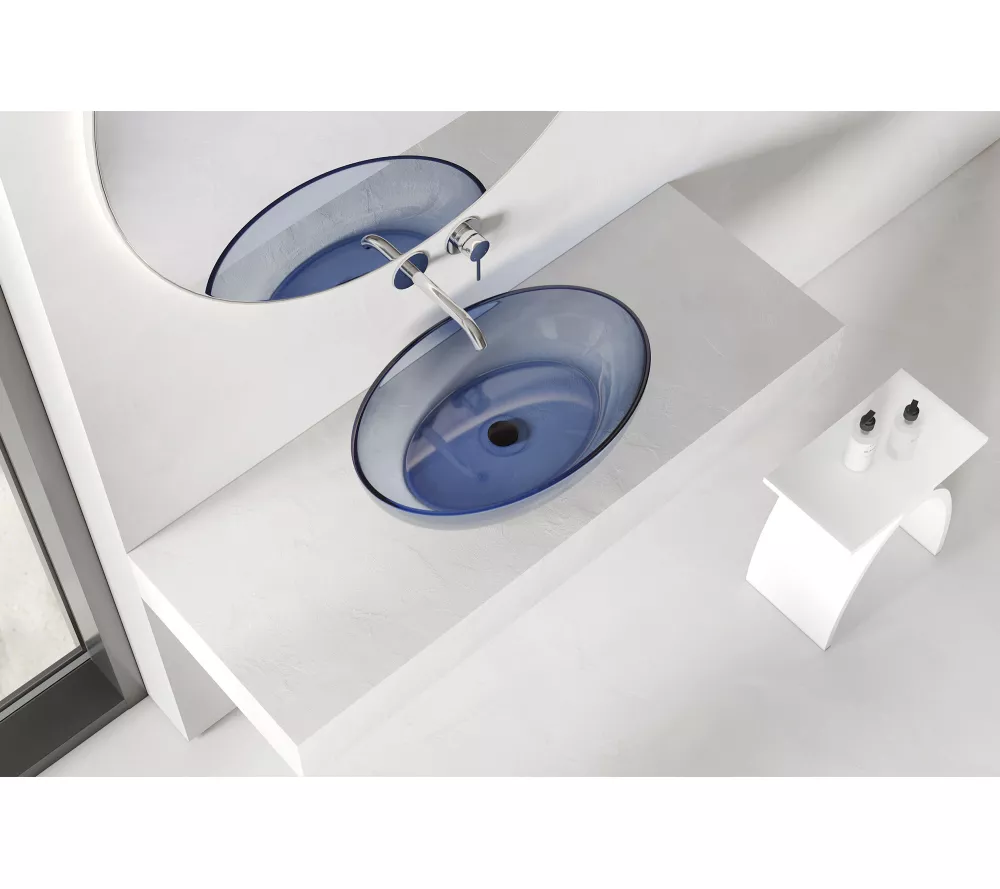Раковина накладная прозрачная ABBER Kristall AT2801Saphir синяя