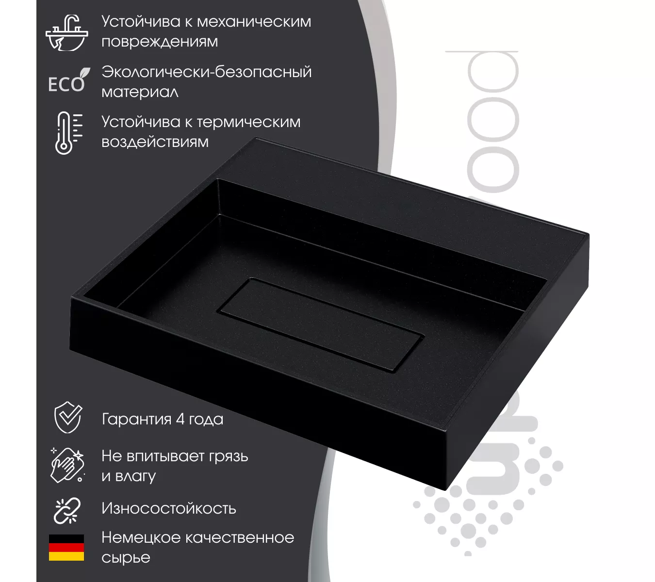 Раковина накладная Uperwood Tanos Quartz 50 см, без отверстия для смесителя, черная (космос)