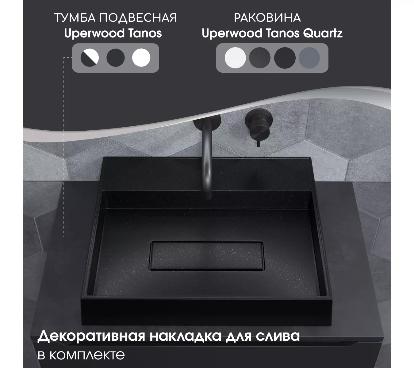 Для установки под раковины Tanos Quartz рекомендуем рассмотреть тумбы из коллекции Uperwood Tanos шириной от 60 см. Дополнительно потребуется приобрести столешницу, подходящую к габаритам изделий.
