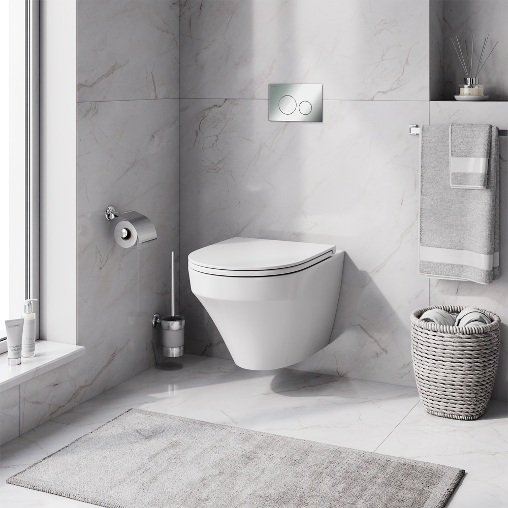 Полностью готовый к установке комплект: система инсталляции с клавишей подвесной унитаз сиденьем. Неразборная рама из стального профиля выдерживает нагрузку до 400 кг. Полностью изолированный бачок с качественной двухрежимной смывной арматурой - комфортное использование благодаря низкому уровню шума - менее 20 Дб. Укомплектован пневматической клавишей в цвете глянцевый хром.