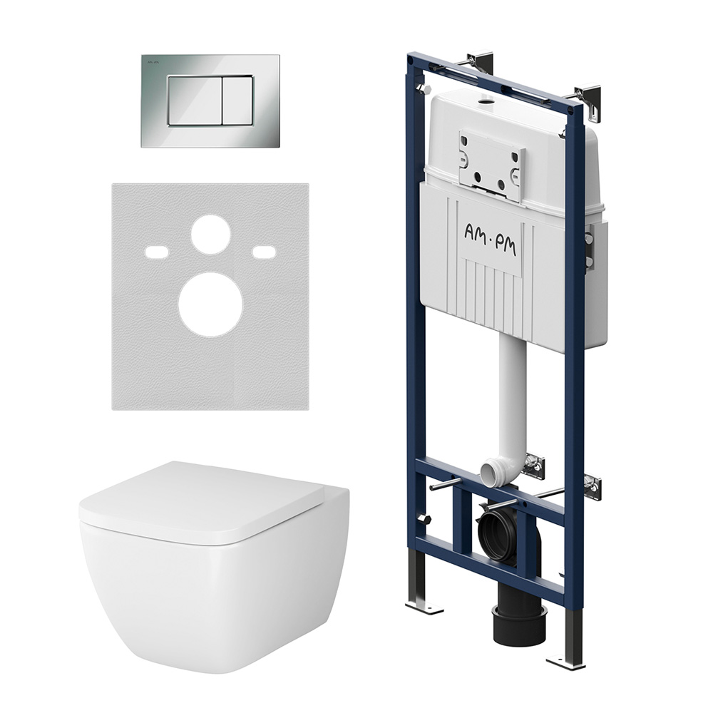 Подходит для унитазов любых размеров. Армированный шланг подачи воды двойная прокладка слива и подачи воды. В комплекте механическая двухрежимная клавиша из ABS пластика в цвете глянцевый хром. Подключение воды сзади сверху. Современный дизайн и трендовая квадратная форма чаши унитаза Gem Flashclean созданные в собственной студии AM.PM Design. FlashClean - новое поколение безободковых унитазов без использования пластика: 100% гигиеничности 0% брызг.