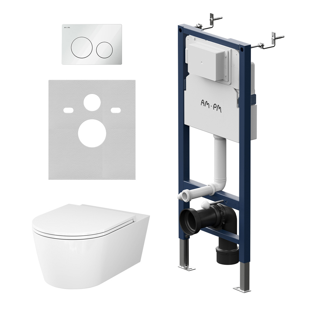 Полностью готовый к установке комплект: система инсталляции с клавишей подвесной унитаз с сиденьем включающий все необходимые крепления патрубки звукоизолирующую прокладку. Экономия пространства благодаря узкому бачку – 120 мм глубиной. Заливной клапан с низким уровнем шума - Класс II согласно европейского стандарта EN 14124. Выдерживает нагрузку до 400 кг.