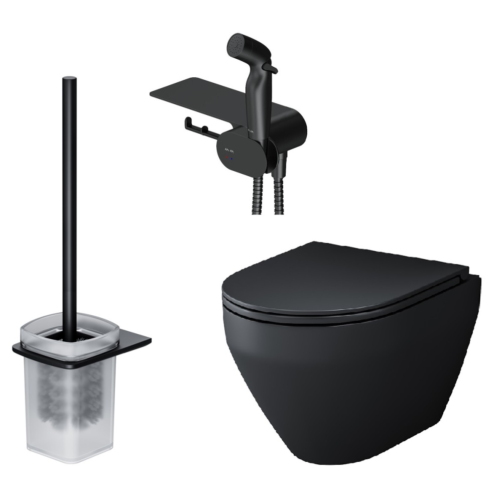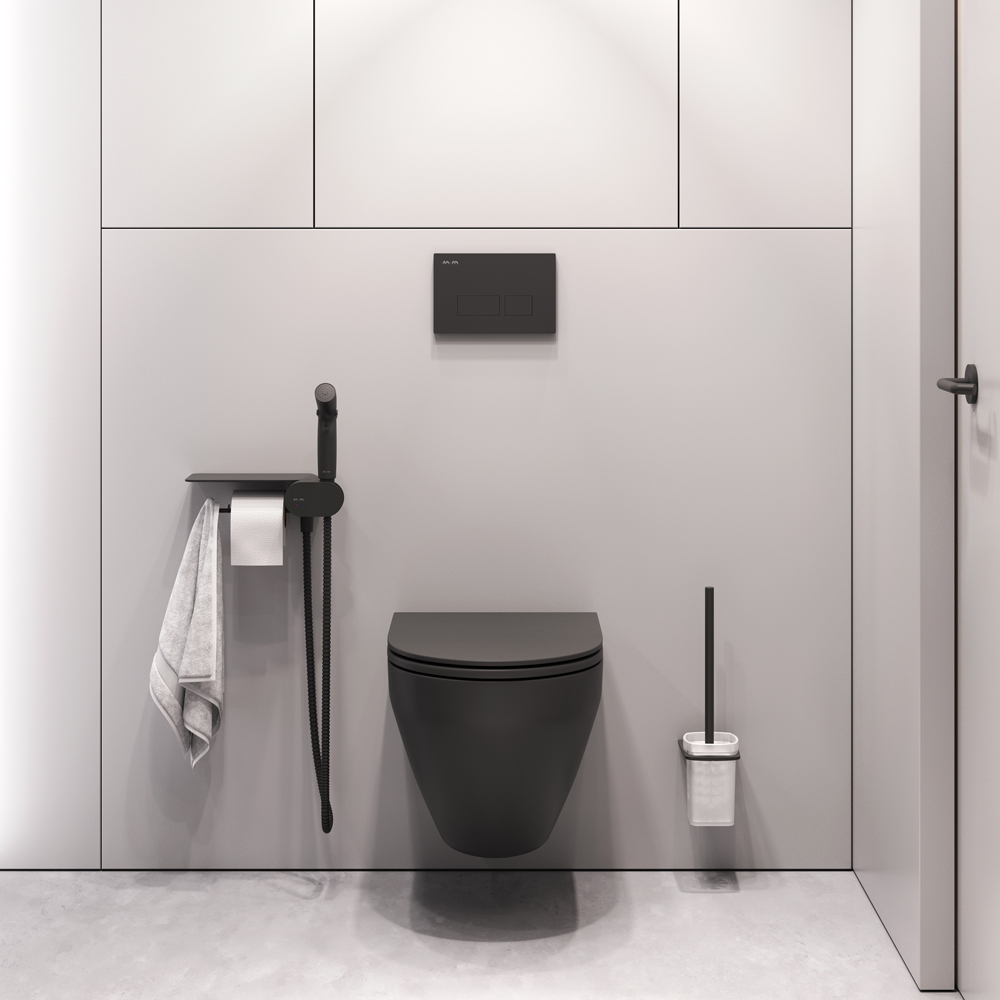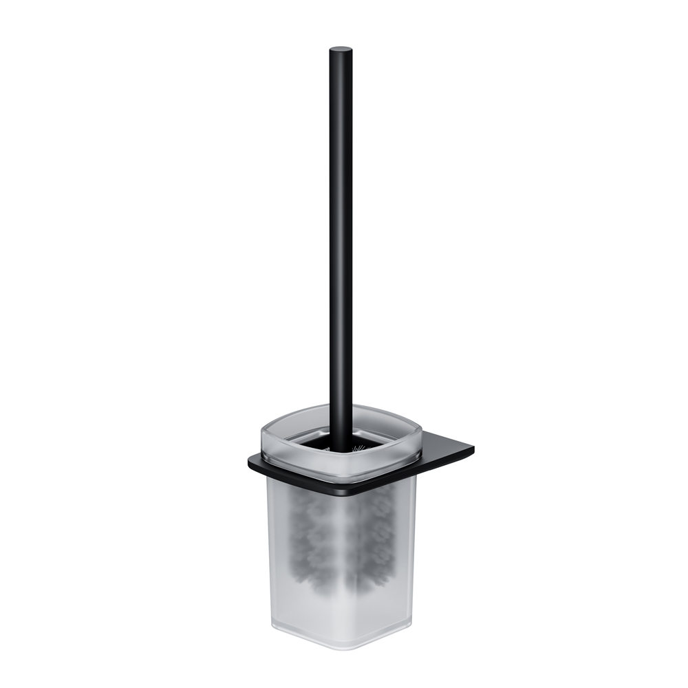 Завершает комплект подвесная cтойка с туалетной щеткой в матовом черном цвете. Обтекаемая форма и стильные элементы из ультратонкого сверхпрочного стекла напоминают современные смартфоны внешне и тактильно.