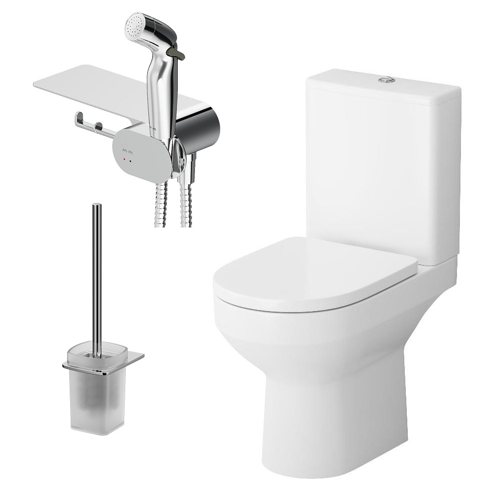 Инновационное и стильное дизайнерское решение для вашей туалетной комнаты от AM.PM. Полностью готовый к установке комплект: напольный унитаз компакт сиденье для унитаза микролифт гигиенический набор с полкой cтойка с туалетной щеткой. Выверенный геометрический дизайн: ровные поверхности в сочетании с четкими гранями. Экономичная система смыва EcoLogic: при каждом смыве экономится 0 6 литров воды а это 4500 литров в год для семьи из 4-х человек.