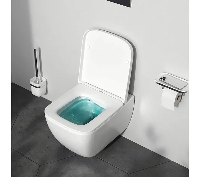 Безупречная поверхность: изготовлен из стекловидного фарфора самого гигиеничного и влагостойкого материала. Компактное дизайнерское решение: идеально впишется в санузел любого размера благодаря проекции 50 см. В комплекте быстросъемное сиденье из дюропласта с механизмом плавного закрывания. Материал сиденья дюропласт устойчивый к появлению царапин в сочетании с креплениями из нержавеющей гарантируют долговечность сиденья. Актуальный дизайн сиденья slim wrap-over с однокнопочным механизмом быстрого снятия. ""