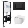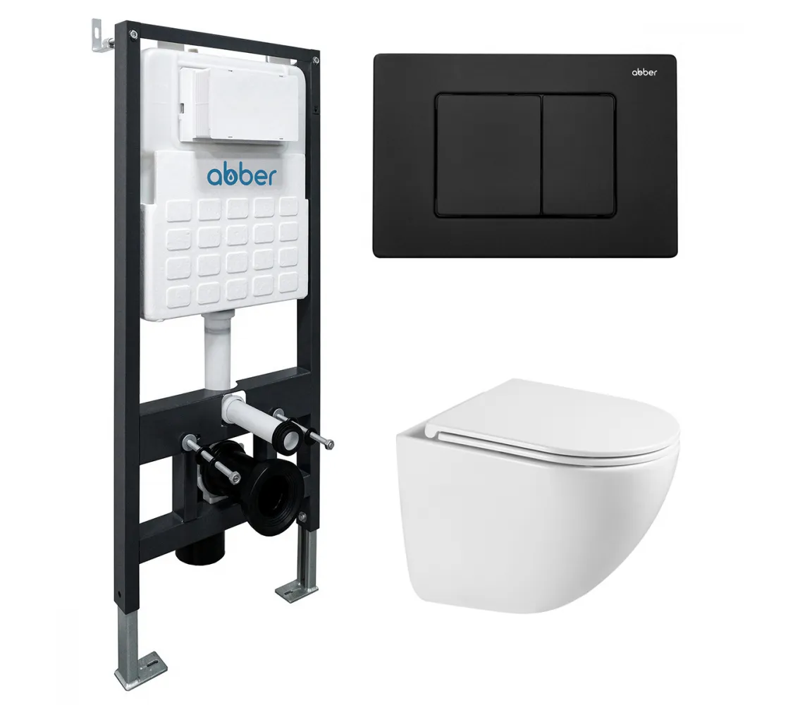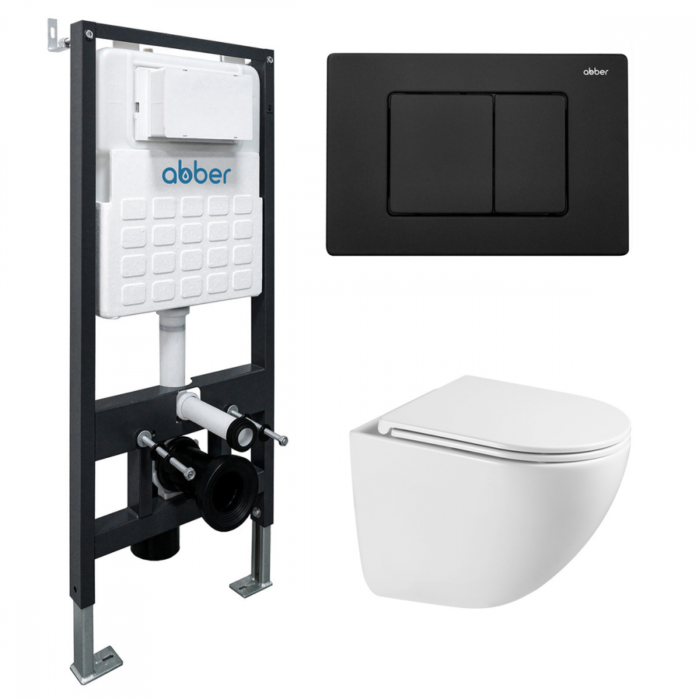Комплект подвесной унитаз ABBER Bequem AC1131TC белый, с закрытым дном с инсталляцией AC0105 и кнопкой AC0120MB черный матовый