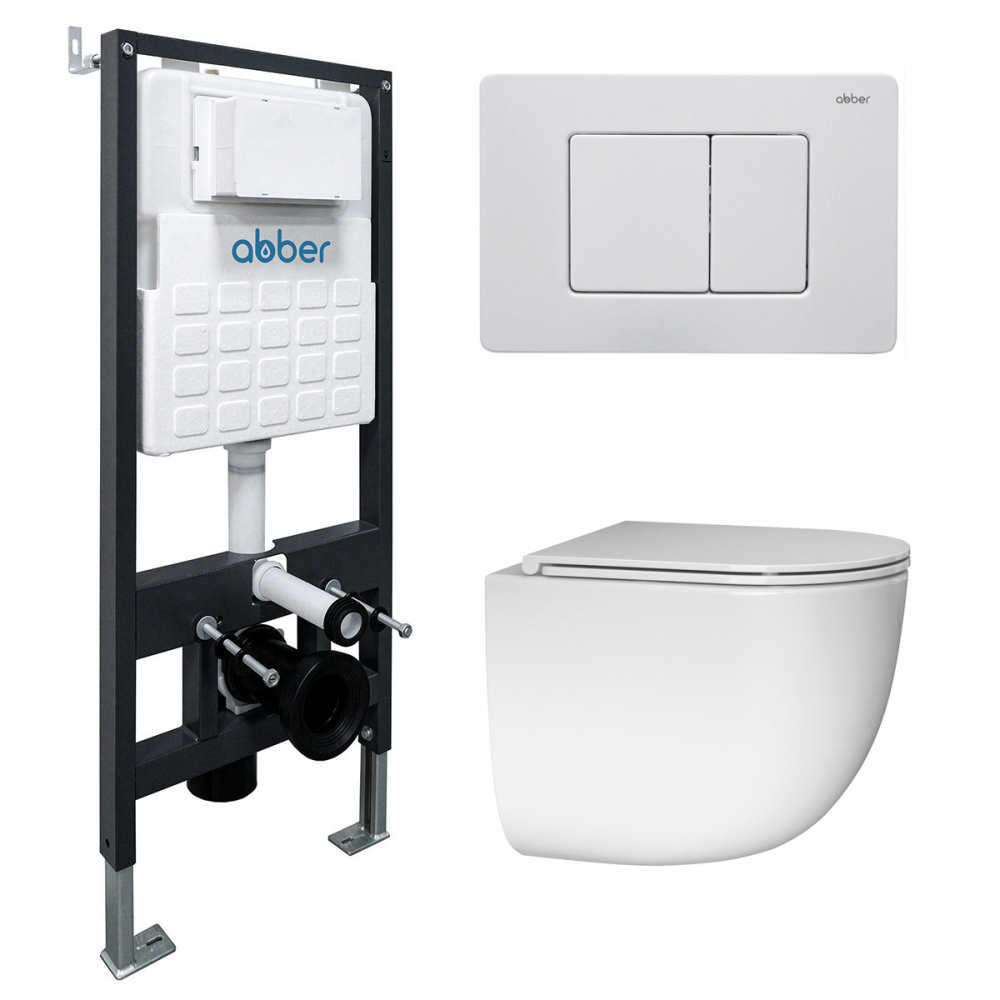 Комплект подвесной унитаз ABBER Bequem AC1132TC белый, с закрытым дном с инсталляцией AC0105 и кнопкой AC0120MW белая матовая