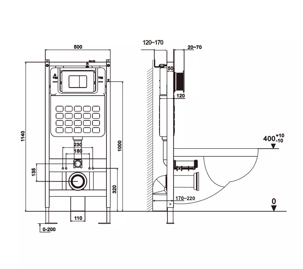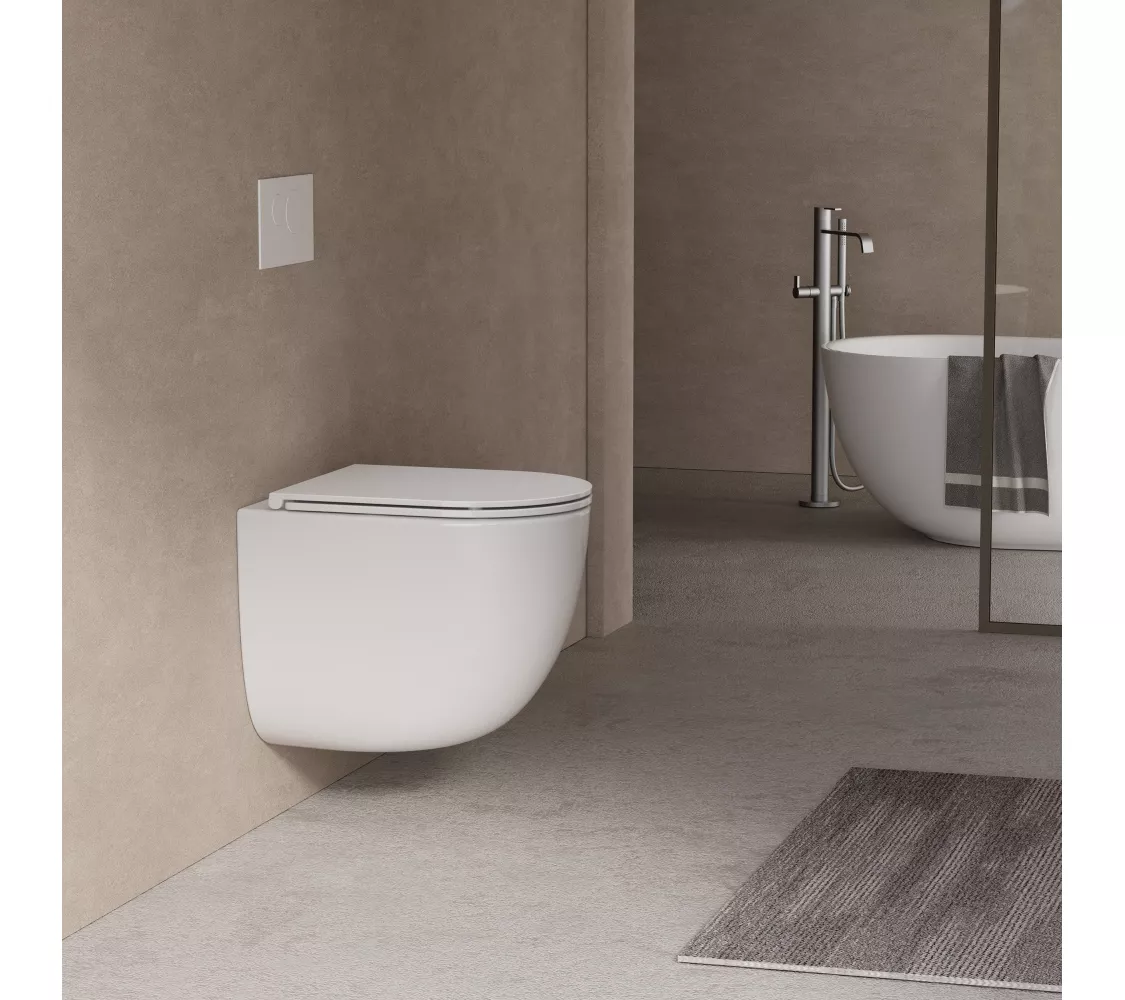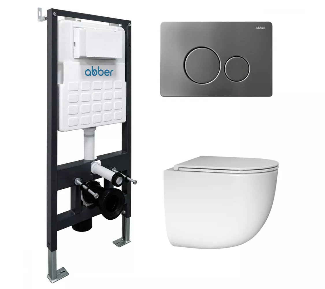 Комплект подвесной унитаз ABBER Bequem AC1132TC белый, с закрытым дном с инсталляцией AC0105 и кнопкой AC0121NG никель
