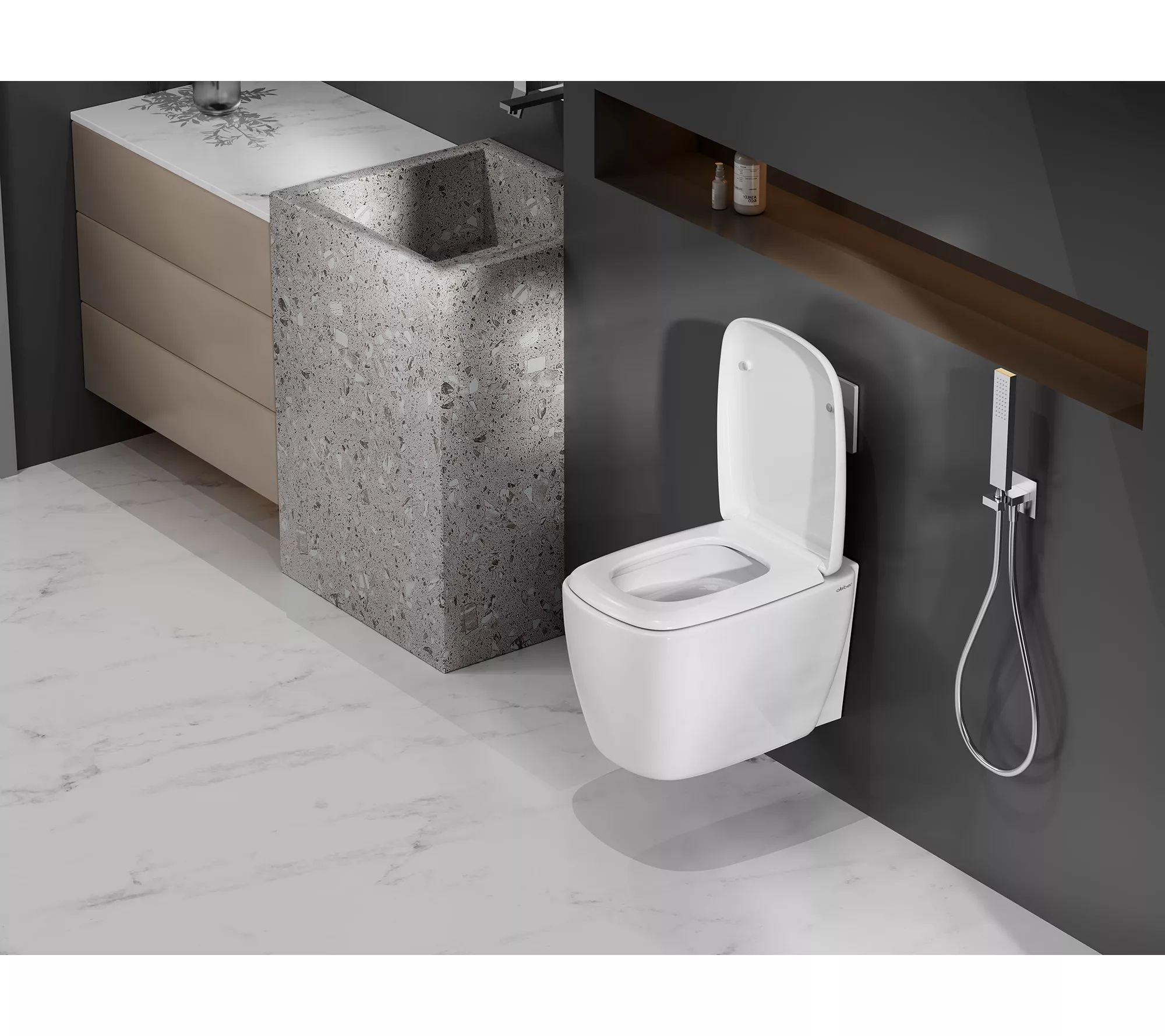 Унитаз ABBER Rechteck AC1217 подвесной белый, безободковый, смыв торнадо