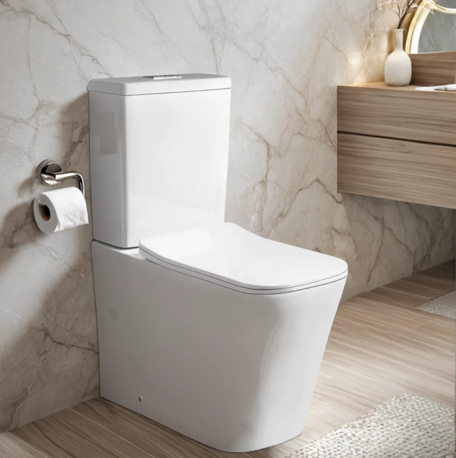 Стекловидный фарфор – это особый вид эмали, которой покрывают изделия, обладающий высочайшим коэффициентом плотности. Такой санфаянс имеет идеально гладкую поверхность и надежно защищен не только от влаги или загрязнений, но и от бактерий. Покрытие устойчиво к истиранию и воздействию химических веществ. Вода и грязь «скатываются» с поверхности и не впитываются в нее.Использование нижней подводки воды позволило добиться практически бесшумного наполнения бачка водой. А сами шланги скрыты от посторонних глаз удобным дизайном чаши унитаза.Безободковые модели не имеют мест, где могла бы скапливаться грязь. В связи с этим унитаз дольше остается чистым и меньше требует уборки едкими моющими средствами.В комплекте присутствует легкосъемное сидение с крышкой, оснащенное системой микролифт (для плавного и бесшумного опускания). Крепления к чаше выполнены из стали, а само сидение - из долговечного полимерного материала – дюропласта с антибактериальным покрытием. Снятие осуществляется одним нажатием кнопки.Антивсплеск обеспечивается конструкцией чаши (воронкообразной). Каскадная система слива омывает всю внутреннюю поверхность чаши. Это обеспечивает качественное очищение.Внимание! Производитель оставляет за собой право вносить изменения в конструкцию и комплектацию моделей без предварительного уведомления!