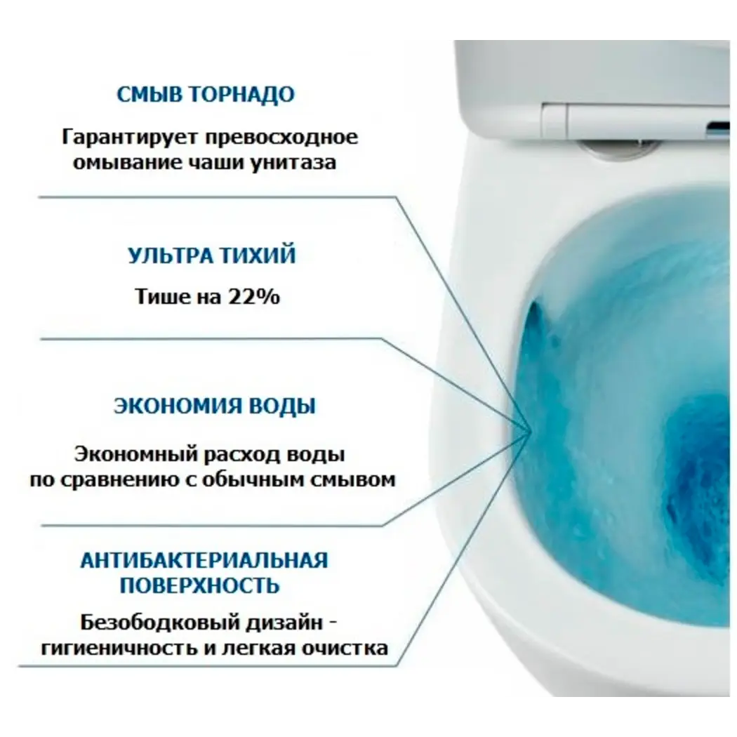 Стекловидный фарфор – это особый вид эмали, которой покрывают изделия, обладающий высочайшим коэффициентом плотности. Такая керамика имеет идеально гладкую поверхность и надежно защищена не только от влаги или загрязнений, но и от бактерий. Покрытие устойчиво к истиранию и воздействию химических веществ. Вода и грязь «скатываются» с поверхности и не впитываются в нее.Особенность подвесных унитазов Ceruttispa в эргономичном использовании пространства. Модель подвесных унитазов можно разместить в уборной любого размера. Также преимуществом выбора такого типа унитаза является отсутствие труднодоступных мест для уборки/мытья пола.В моделях SELLA Aria Tornado полностью отсутствует ободок! Эти модели не имеют мест, где могла бы скапливаться грязь. В связи с этим унитаз дольше остается чистым и меньше требует уборки едкими моющими средствами.В комплекте присутствует легкосъемное сидение с крышкой, оснащенное системой микролифт (для плавного и бесшумного опускания). Крепления к чаше выполнены из стали, а само сидение - из долговечного полимерного материала – дюропласта с антибактериальным покрытием. Снятие осуществляется одним нажатием кнопки.Смыв в унитазе происходит по принципу TORNADO – поступающая из отверстия в чаше вода мощным потоком закручивается (эффект водоворота) и полностью очищает всю внутреннюю поверхность чаши. При этом воды требуется на качественный смыв в небольшом количестве.Бесшумность - дополнительное преимущество данного унитаза. Внимание! Производитель оставляет за собой право вносить изменения в конструкцию и комплектацию моделей без предварительного уведомления!
