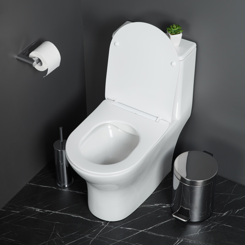 Унитаз-моноблок представляет собой единую конструкцию, в которой бачок для смыва и чаша соединены в одно целое. Это идеальное сочетание функциональности и эстетики, что делает их отличным выбором для любой ванной комнаты.Унитазы моноблоки имеют элегантный и цельный вид, который гармонично вписывается в любой интерьер — от современного и минималистичного до классического и роскошного. Их гладкие линии и отсутствие видимых швов облегчают уход за унитазом, обеспечивая более гигиеничные условия.Благодаря минимальному количеству стыков, моноблоки менее подвержены утечкам и повреждениям. Качественная двухрежимная арматура, гарантирует долговечность и надежность, с нижним подводом воды обеспечивающим плавное и тихое заполнение бачка. Безободковая конструкция чаши обеспечивает отличную гигиену и простоту ухода. Мощный смыв с минимальным уровнем шума, что делает их комфортными в использовании.•Продукция произведена по международным стандартам EN•Эффективный спиралевидный смыв
